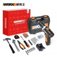 威克士(Worx)12伏锂电钻WX129.5 冲击钻家用手电钻维修套装车载木工电工工具箱59件套电动工具