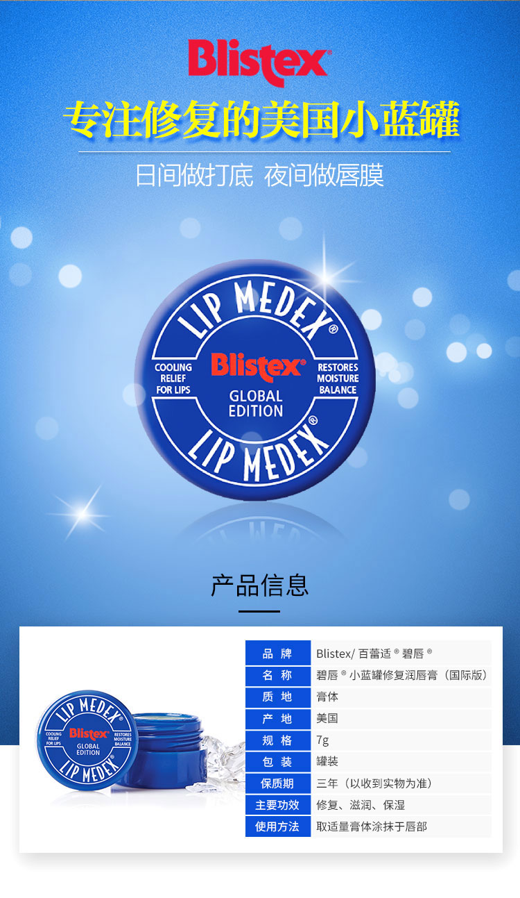 商品名称:美国Blistex碧唇小蓝罐修复润唇膏
