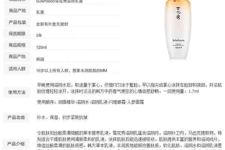 商品名称:sulwhasoo 雪花秀滋阴乳液