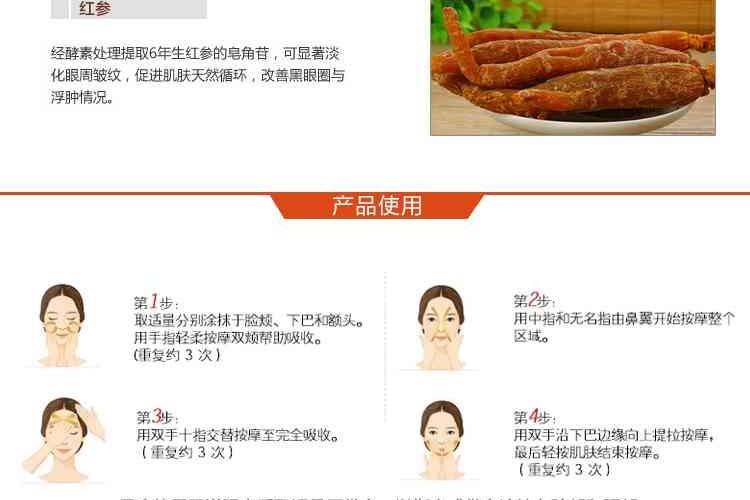 经酵素处理提取6年生红参的皂角苷,可以显著淡化眼周皱纹,促进肌肤天然循环,改善黑眼圈与浮肿情况