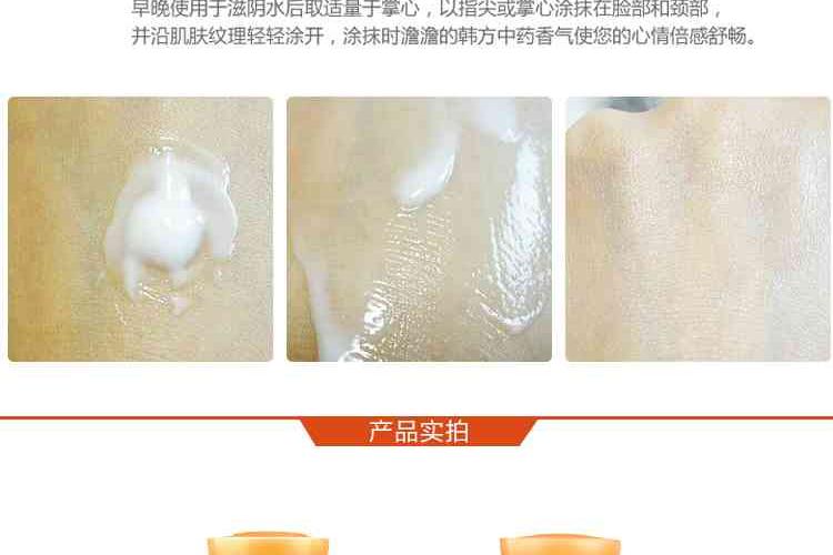 并沿肌肤纹理轻轻涂开,涂抹时澹澹的韩方中药香气使您的心情倍感舒畅