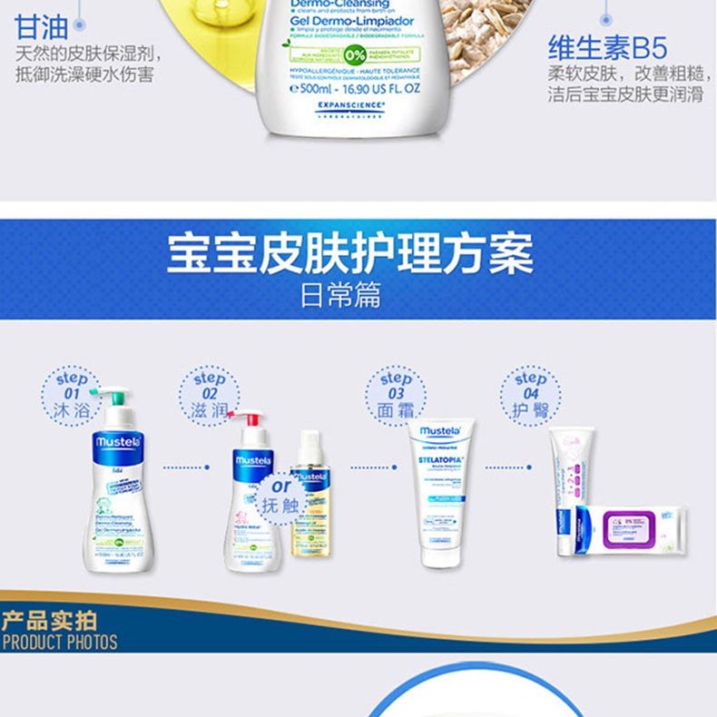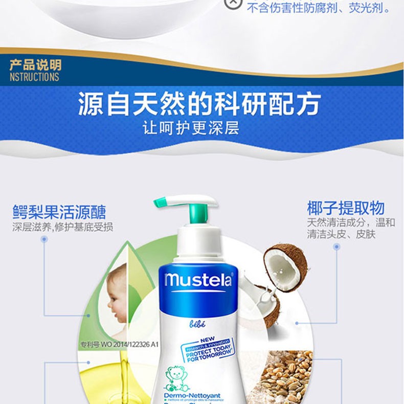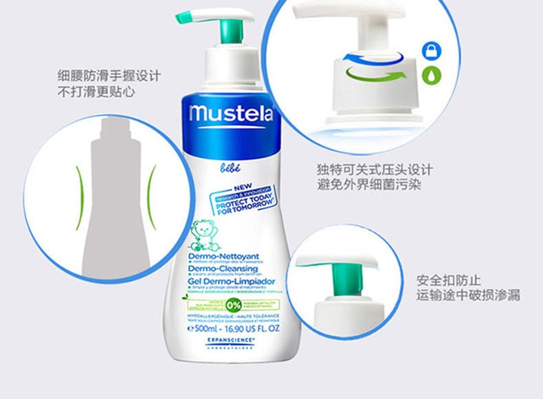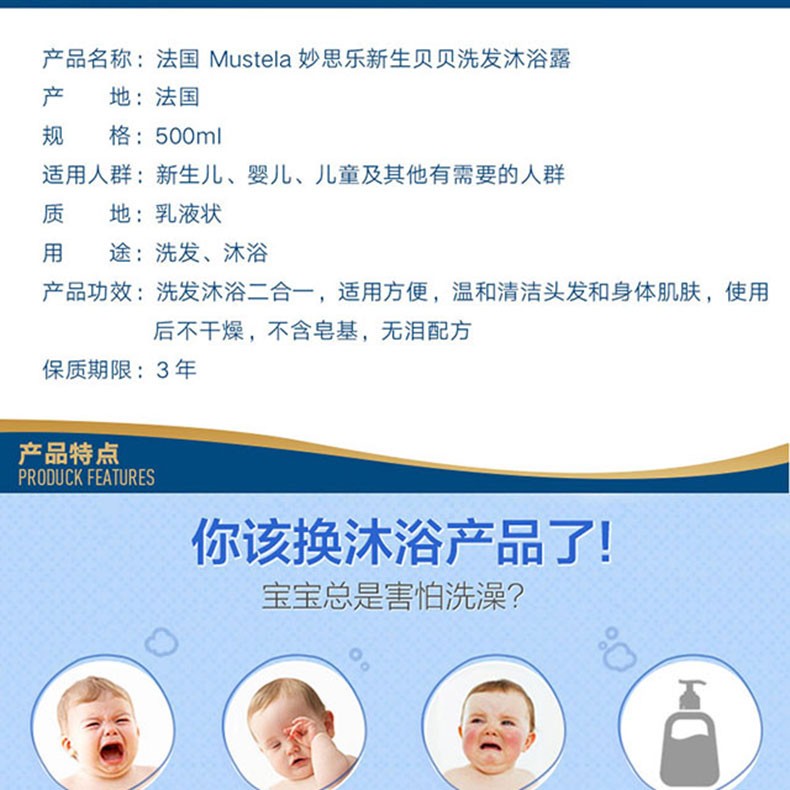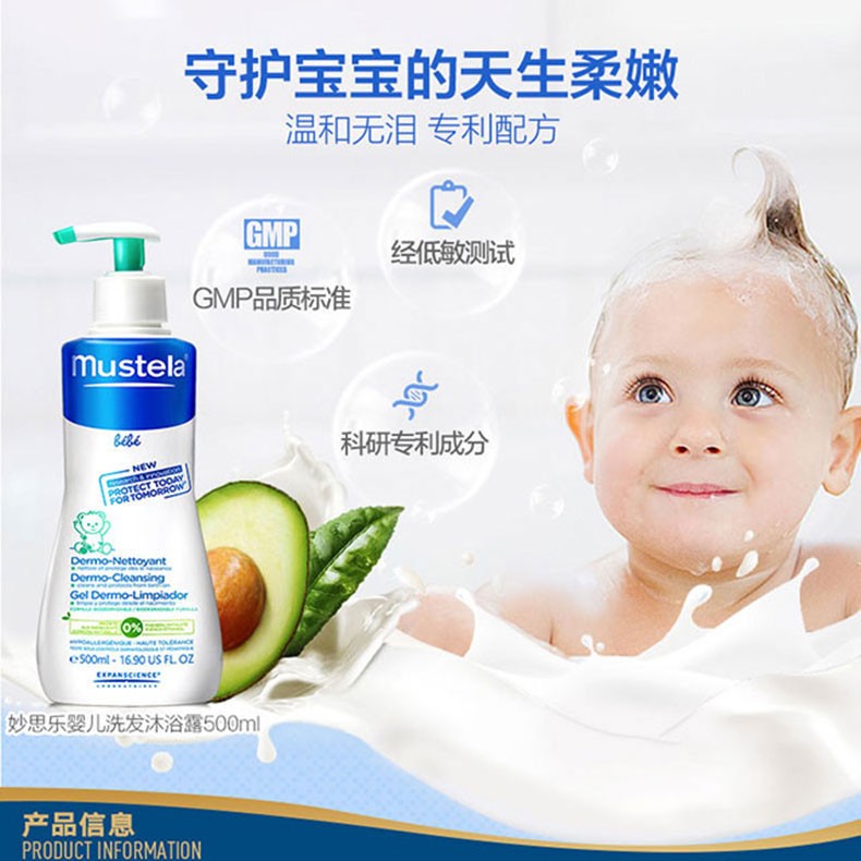 商品名称:mustela/妙思乐婴儿洗发沐浴二合一500ml 两瓶装