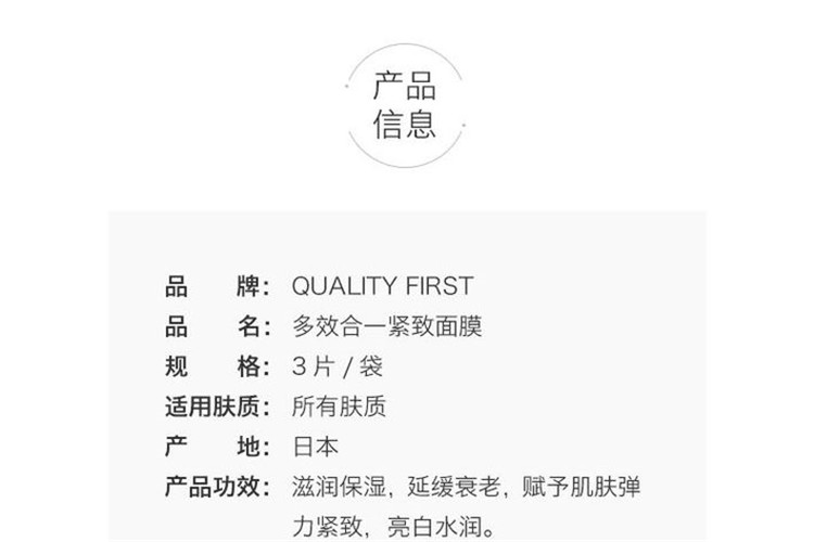 商品名称:日本皇后的秘密quality first抗衰老补水紧致黑面膜一包3枚 4包装