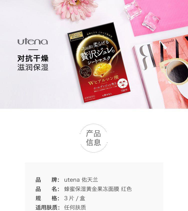 商品名称:日本 佑天兰 Utena 保湿黄金果冻面膜 红色 3片 两盒装