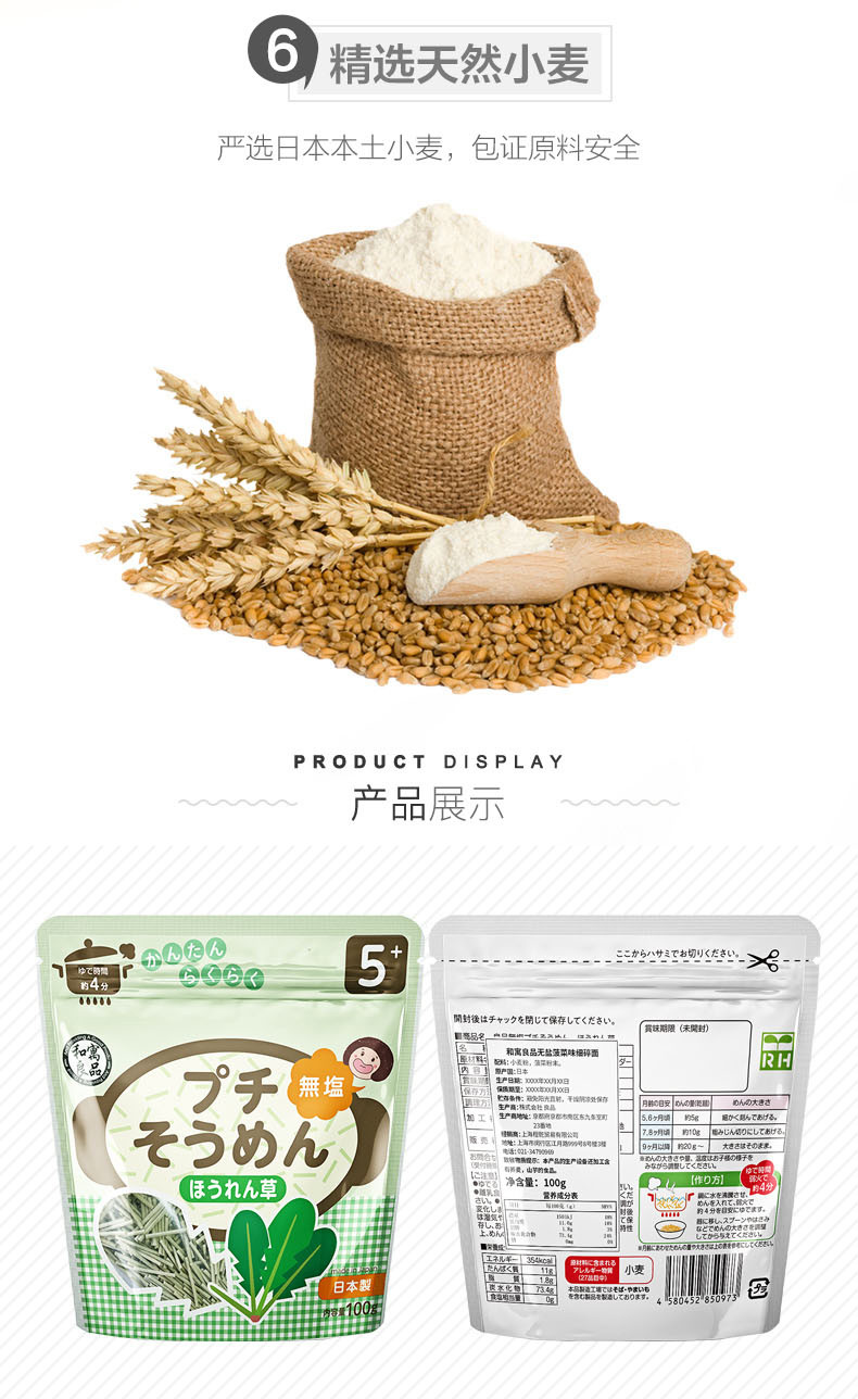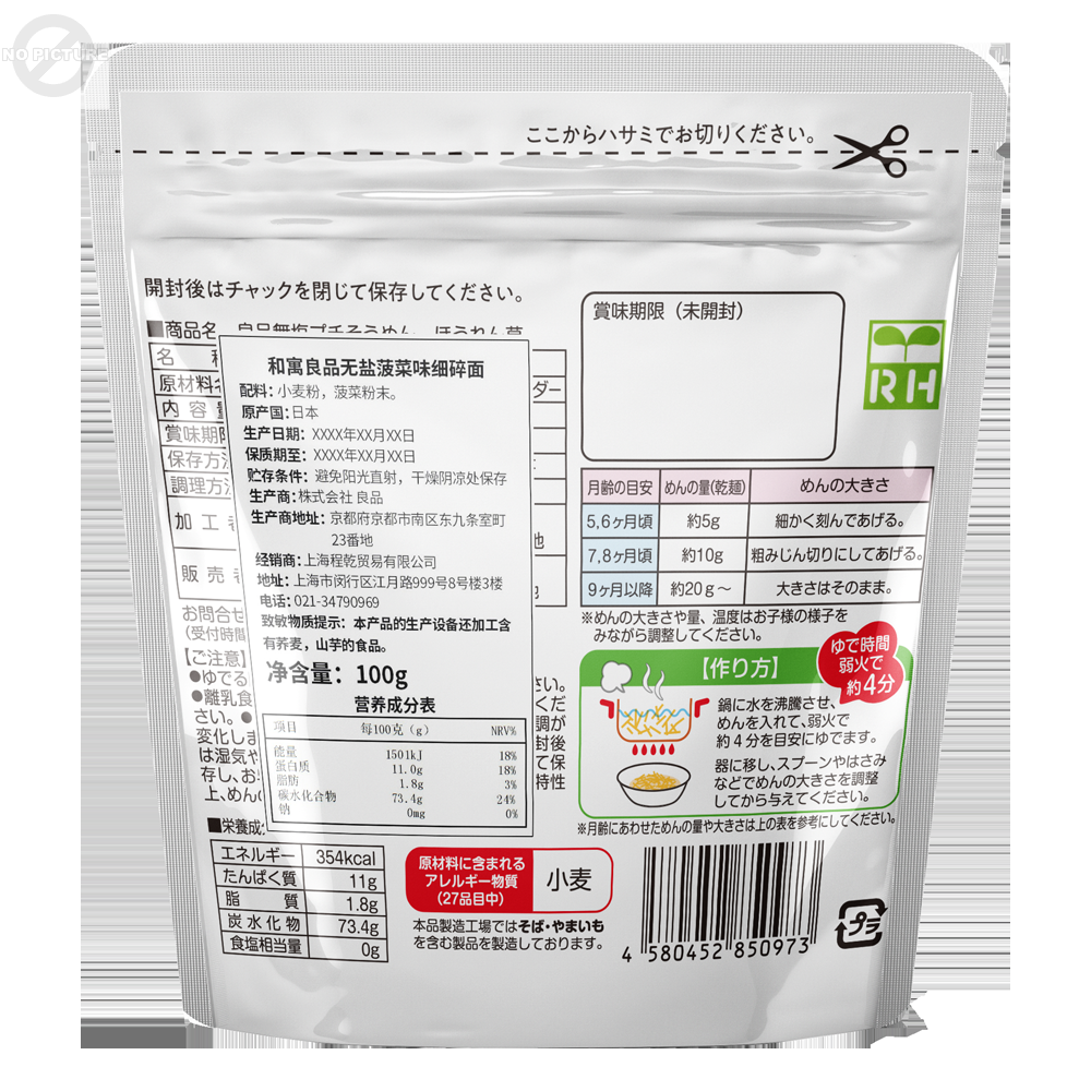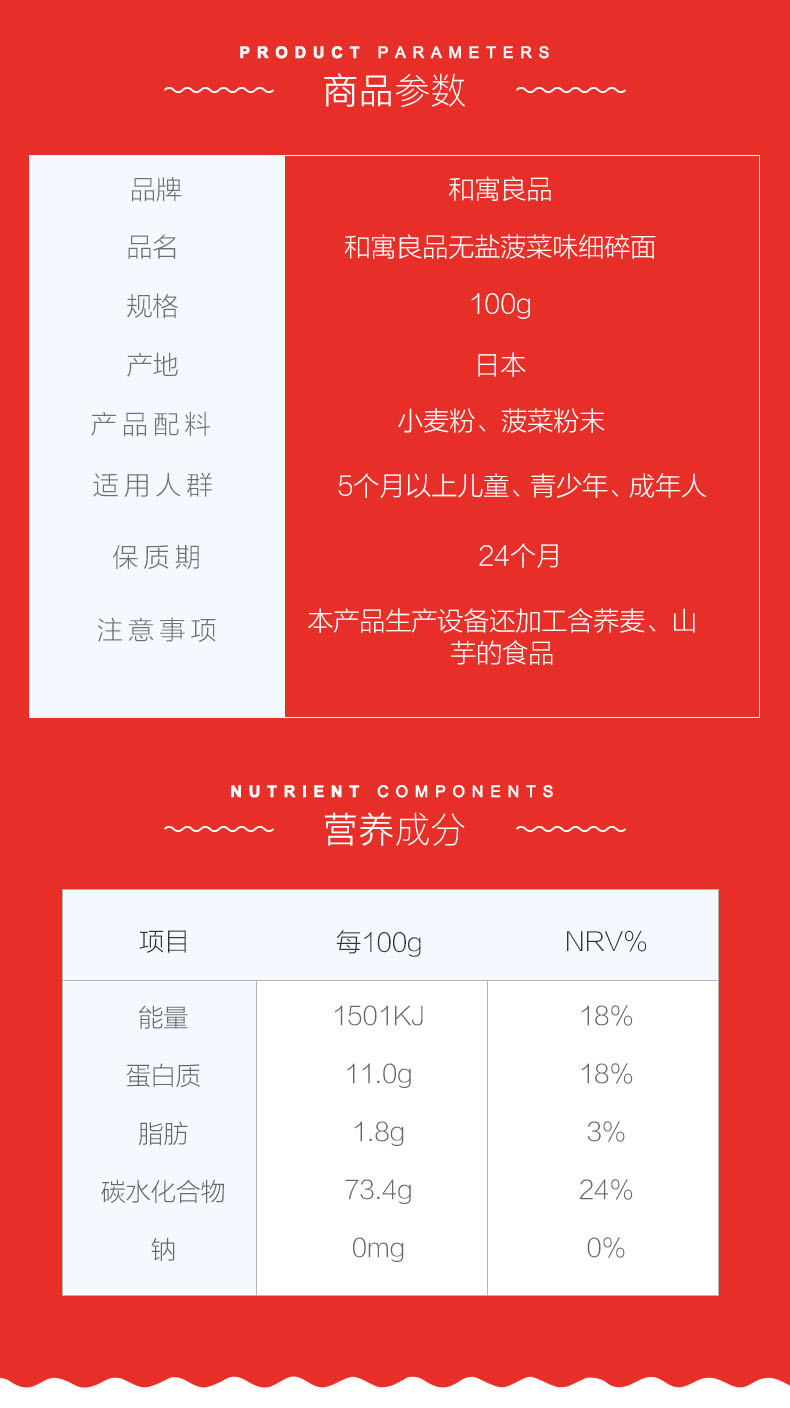 商品名称:日本和寓良品菠菜味细碎面100g2包装