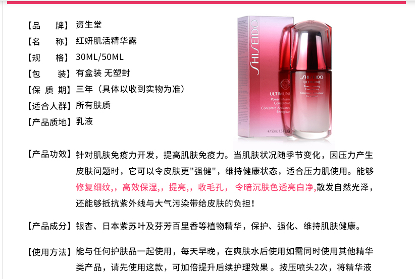 商品名称:【香港直邮】资生堂Shiseido 精华液 红妍肌活精华露傲娇精华 红腰子 50ml新老包装随机