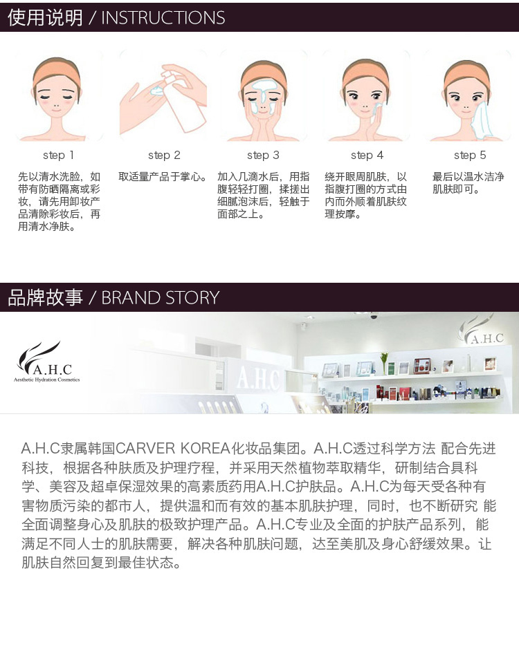 商品名称:韩国AHC B5玻尿酸保湿舒缓洁面乳洗面奶 180ml