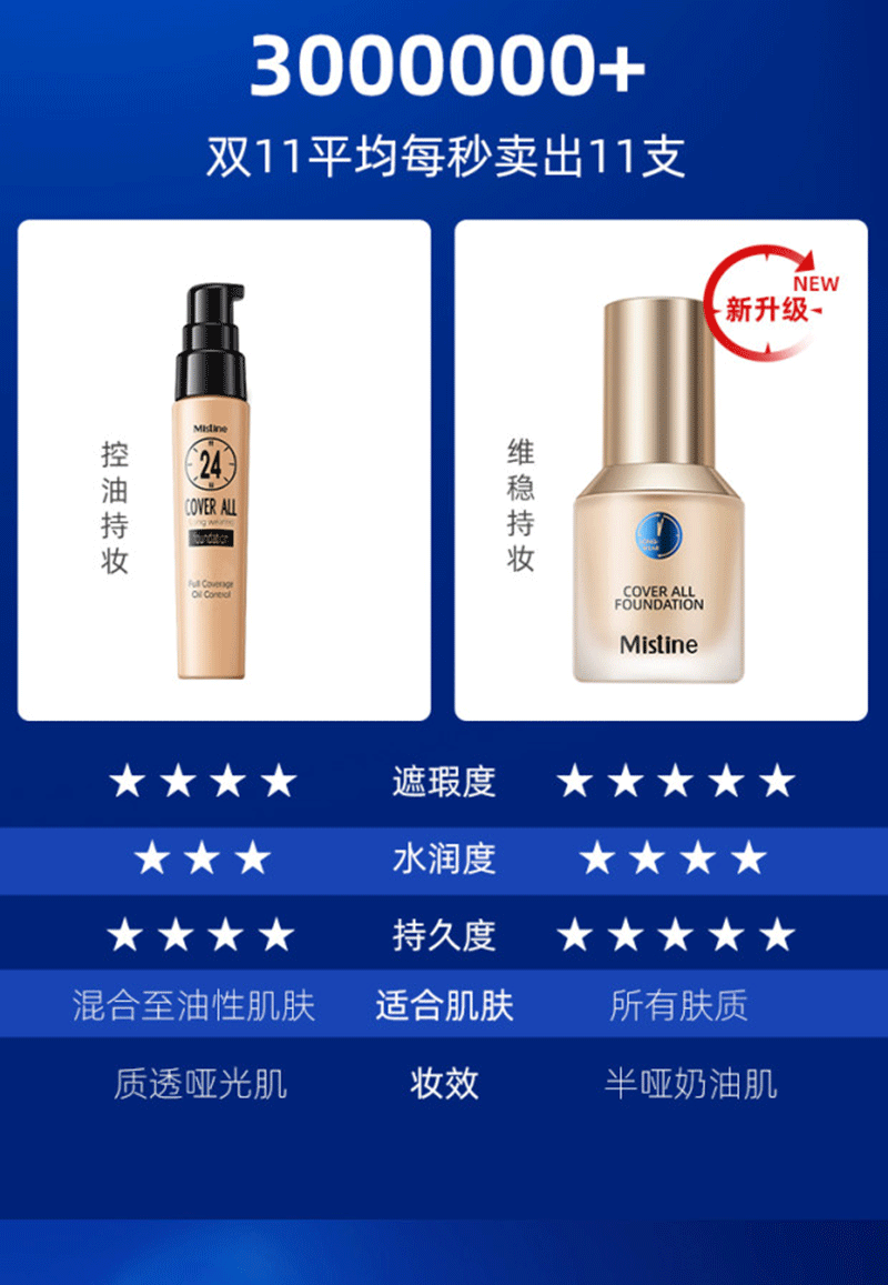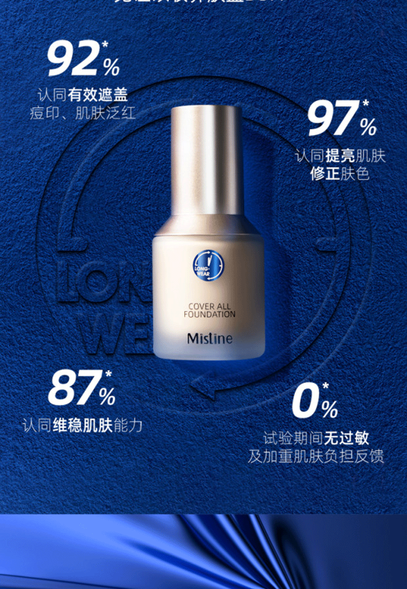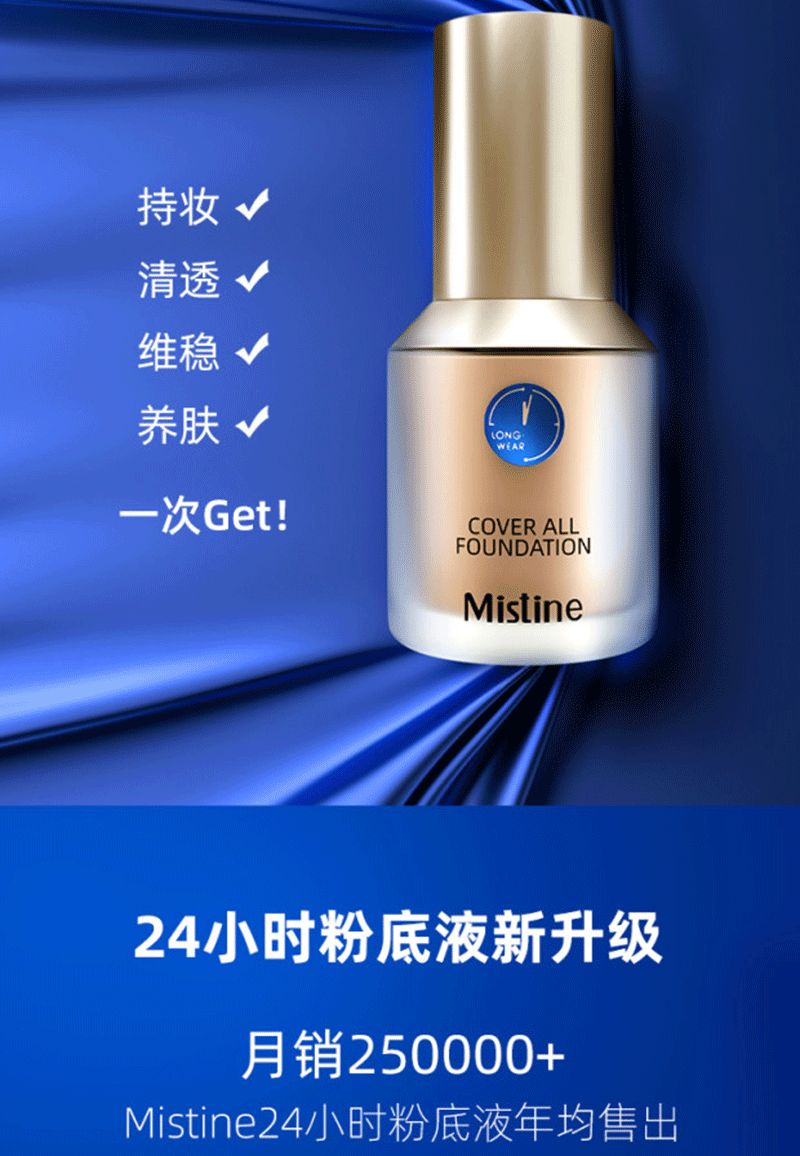商品名称:泰国Mistine蜜丝婷柔雾小蓝盾持妆清透粉底液#LF110自然偏白/黄肤色(30G/支)
