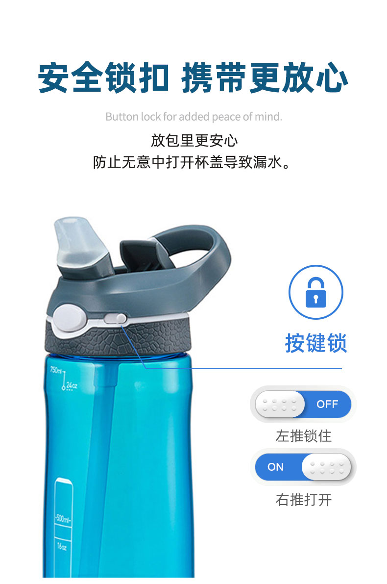 BTIF运动水杯吸管杯成人大容量健身水壶孕妇便携随手杯 玫瑰红750ml