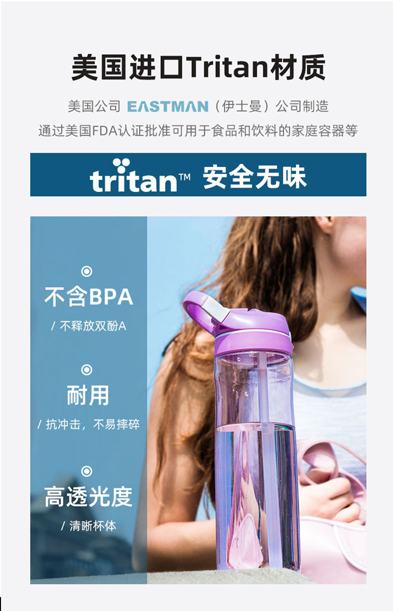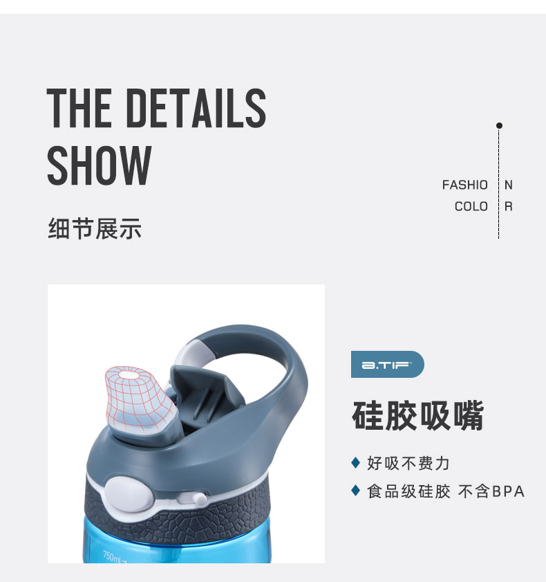 商品名称:BTIF运动水杯吸管杯成人大容量健身水壶孕妇便携随手杯 玫瑰红750ml