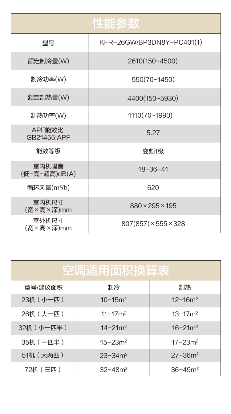 商品名称:美的1P挂机KFR-26GW/BP3DN8Y-PC401(1)