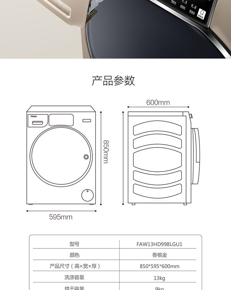 商品名称:海尔洗衣机FAW13HD998LGU1