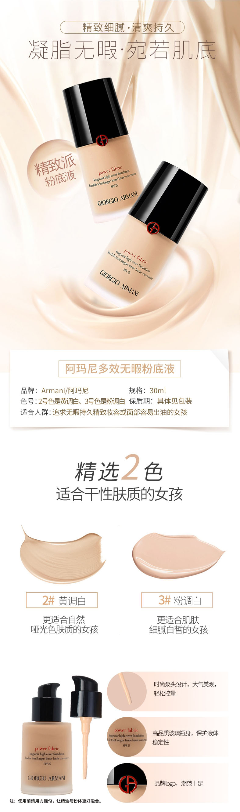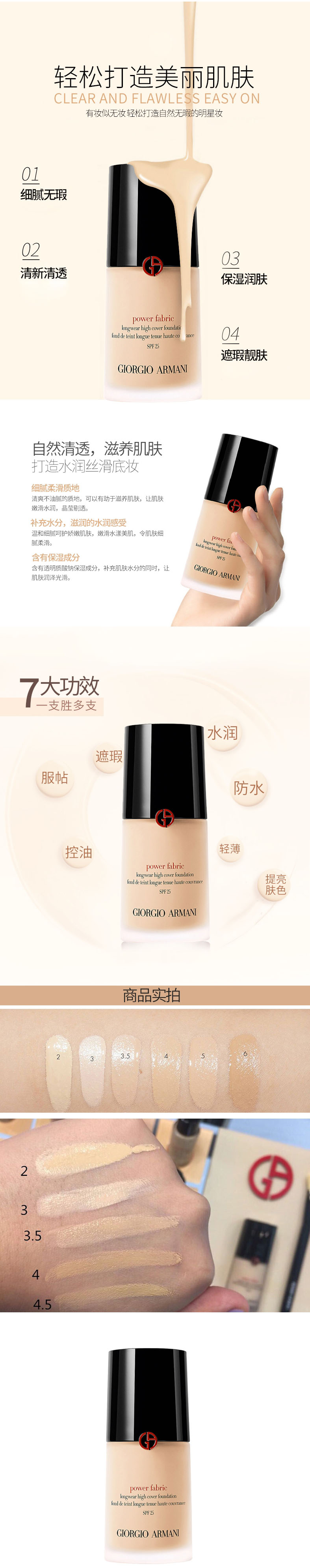 商品名称:(香港直邮)法国阿玛尼Armani 持久零瑕粉底液30ML 2号色