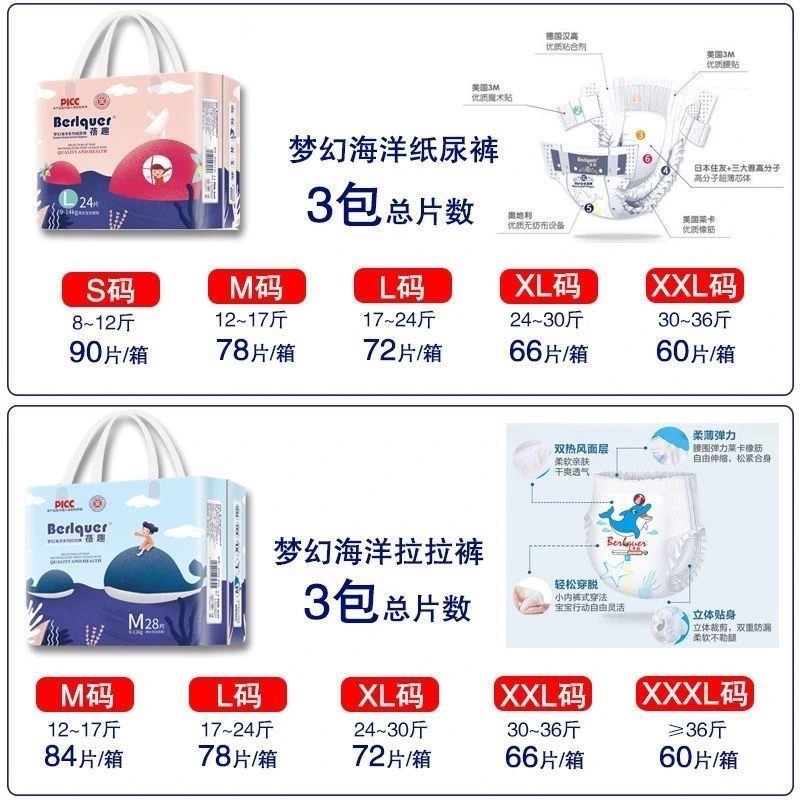 商品名称:蓓趣(梦幻海洋系列)医护级超柔超薄婴儿纸尿裤S码90片/箱