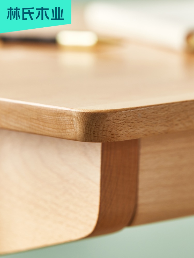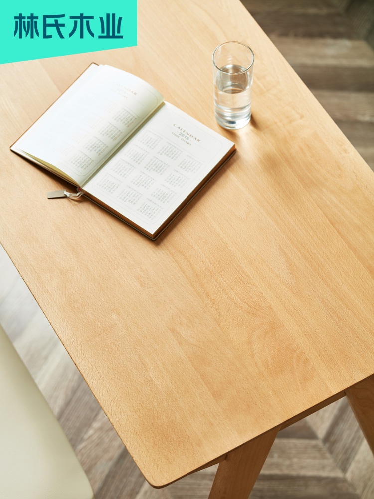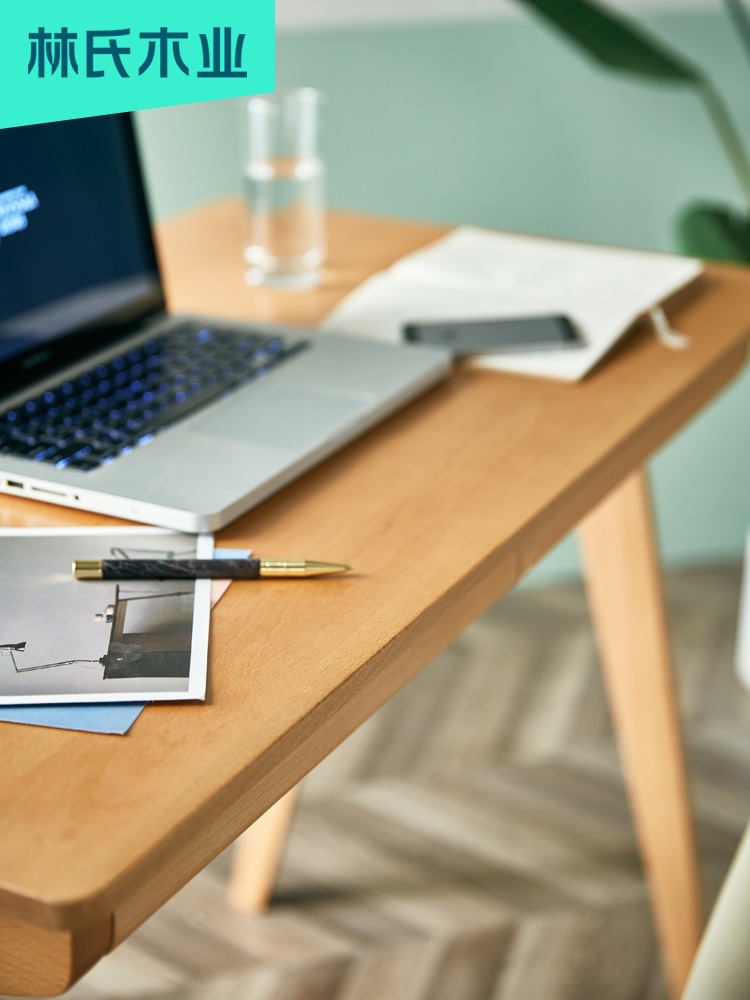 林氏木业北欧简约全实木书桌椅家用ins书画桌电脑桌卧室家具LS155