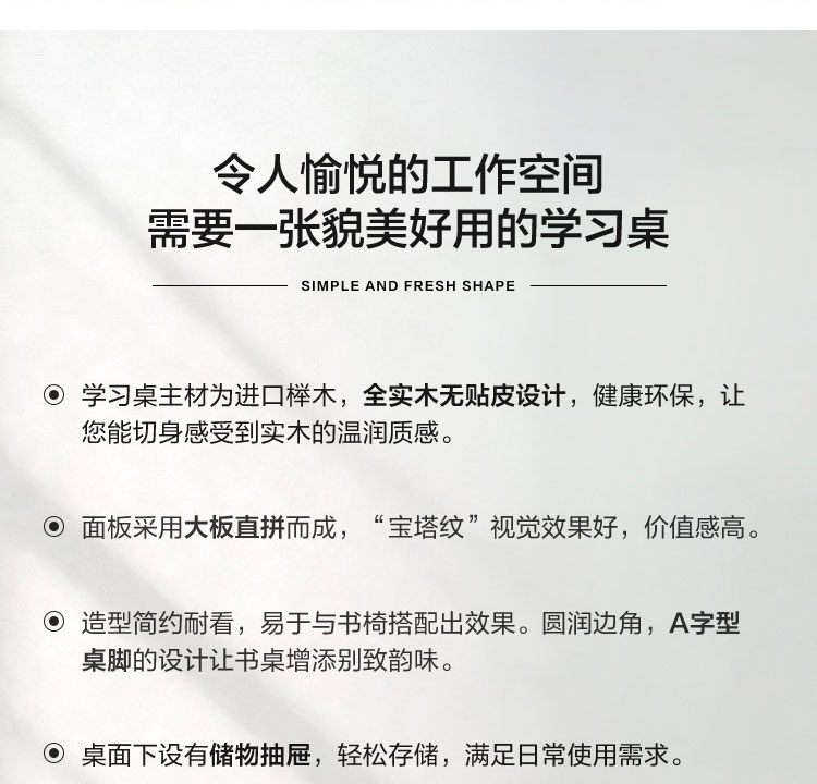 商品名称:林氏木业北欧简约全实木书桌椅家用ins书画桌电脑桌卧室家具LS155