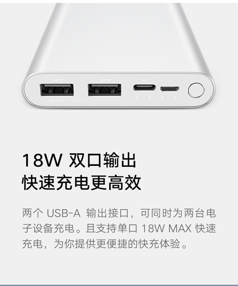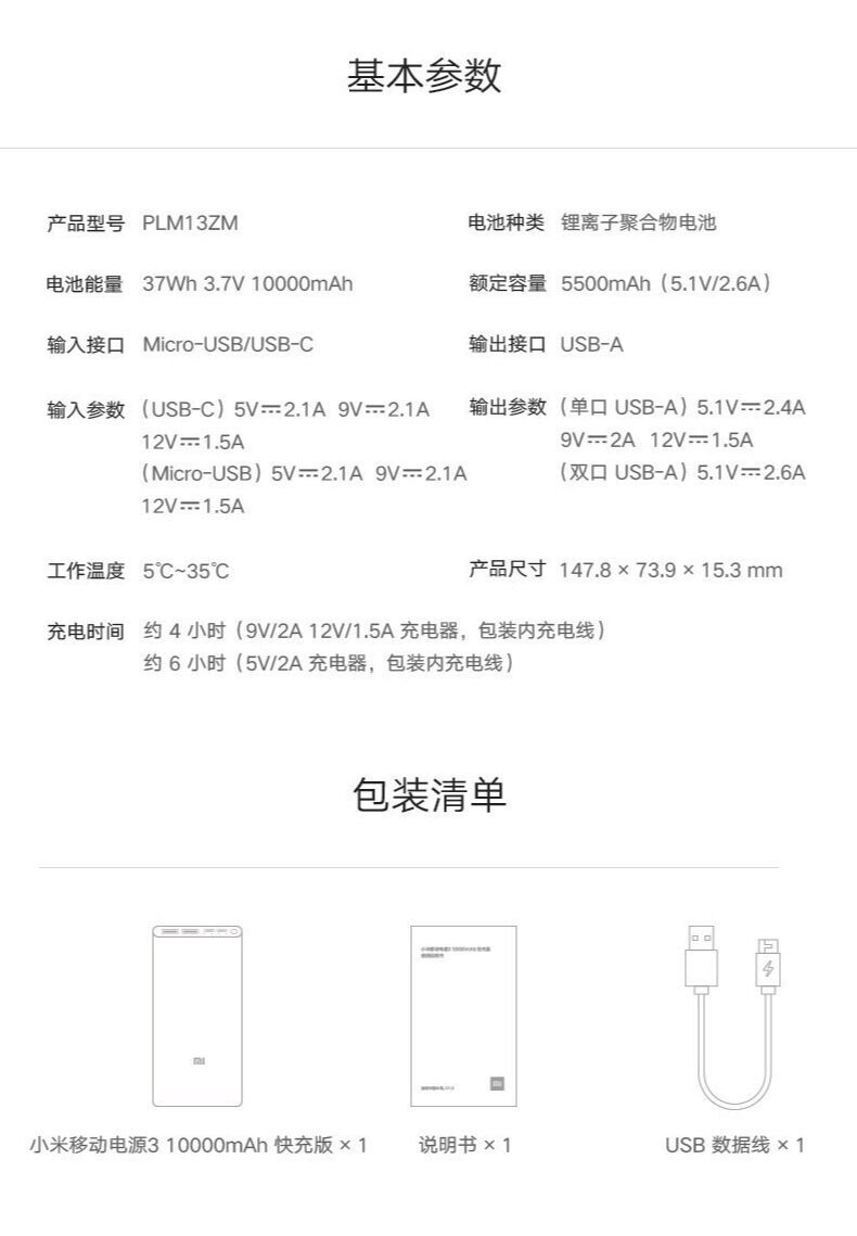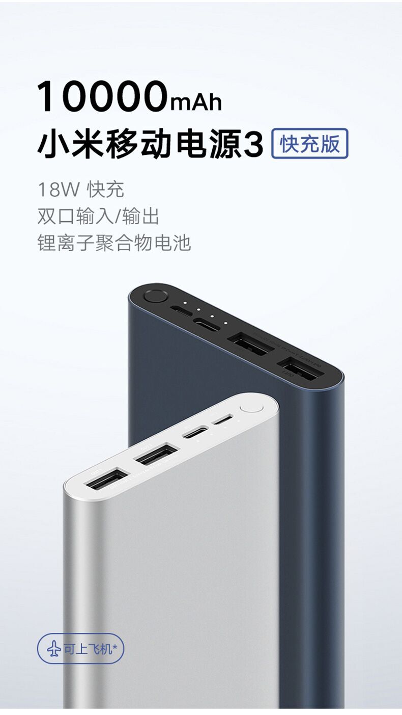 商品名称:小米移动电源3代10000毫安超薄充电宝