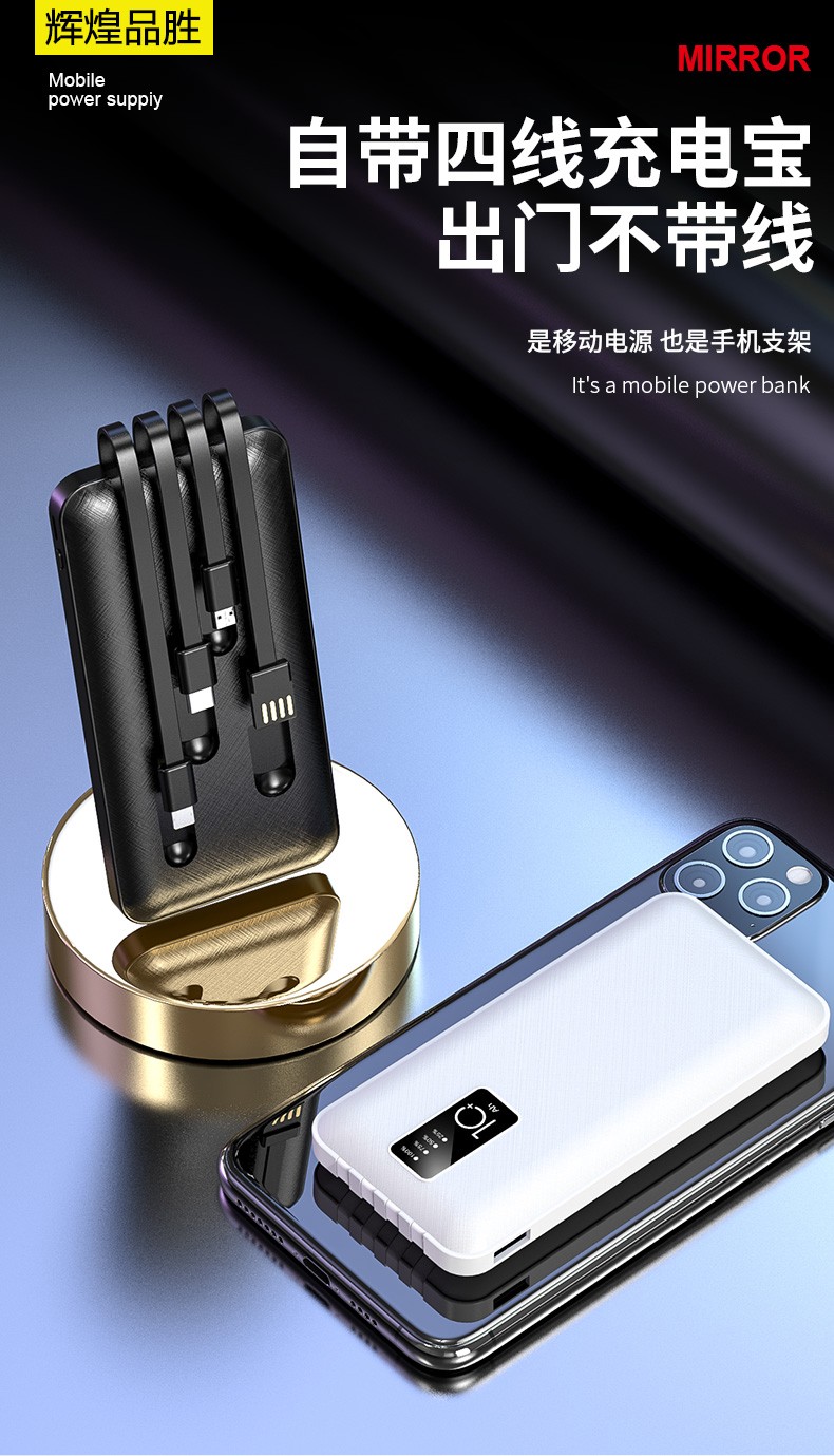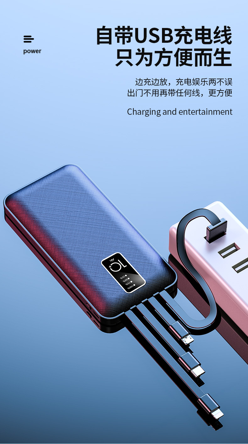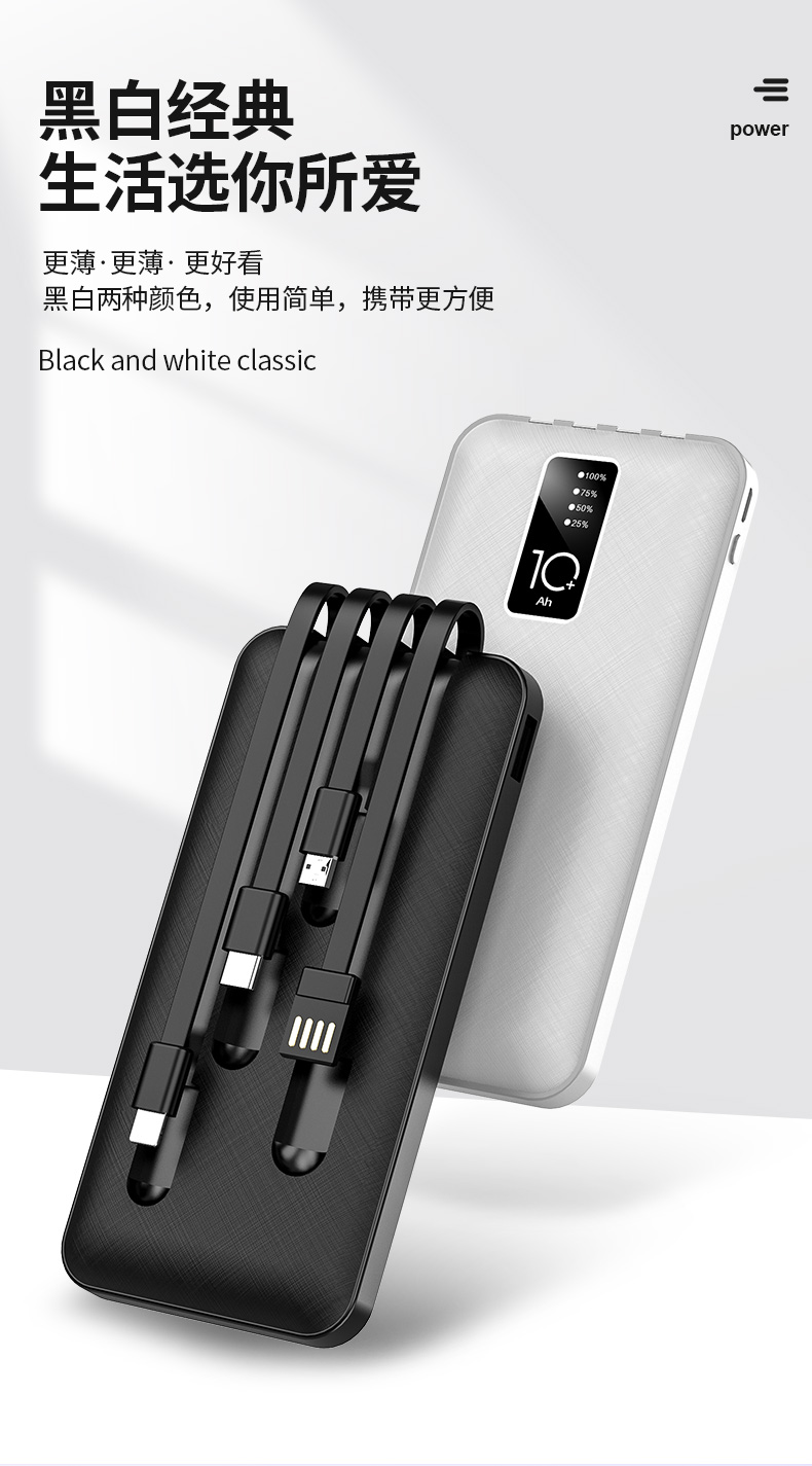 商品名称:品胜充电宝20000毫安快充超薄迷你小巧便捷大容量自带线移动电源w