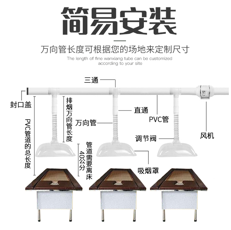艾灸排烟系统养生馆排烟机家用管道风机设备吸烟罩万向定位竹节管