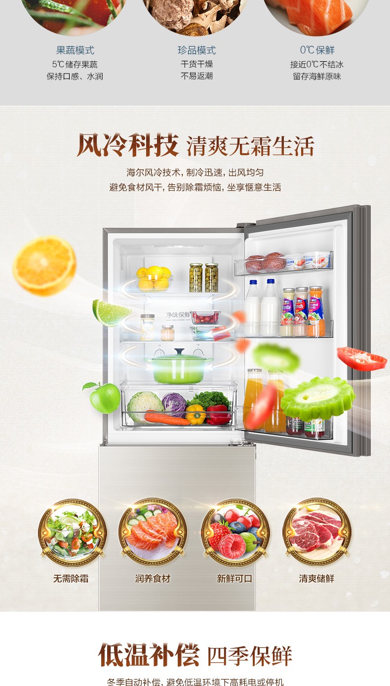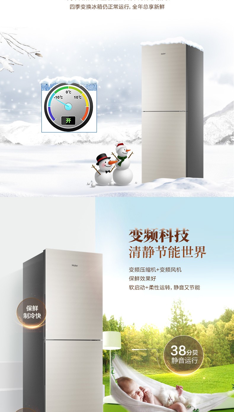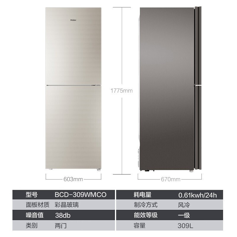 商品名称:海尔电冰箱309升双门变频两门风冷无霜家用一级官方BCD-309WMCO