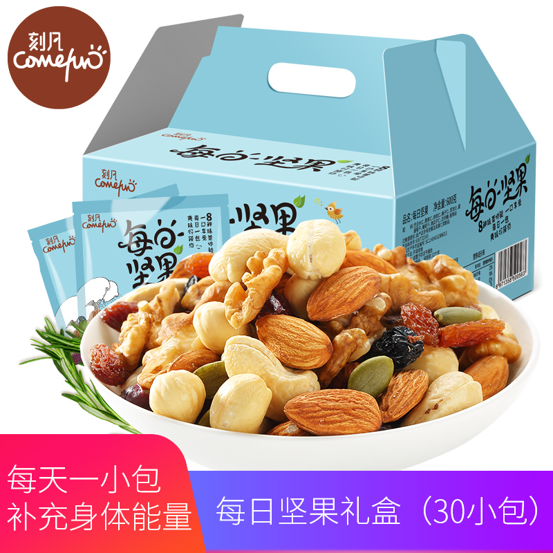 刻凡COMEFFUN每日坚果混合8种坚果30包600g大礼包零食坚果大礼包干果 孕妇儿童的健康零食