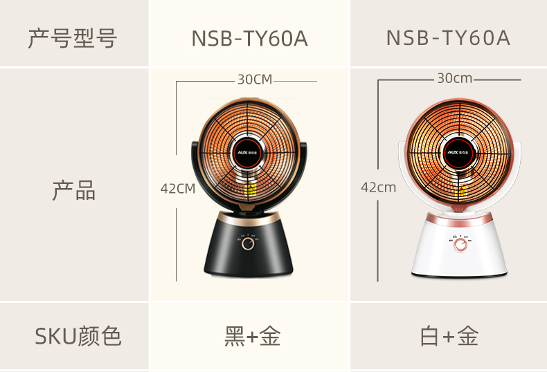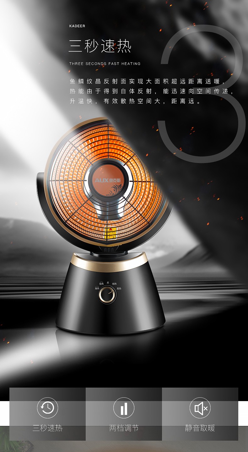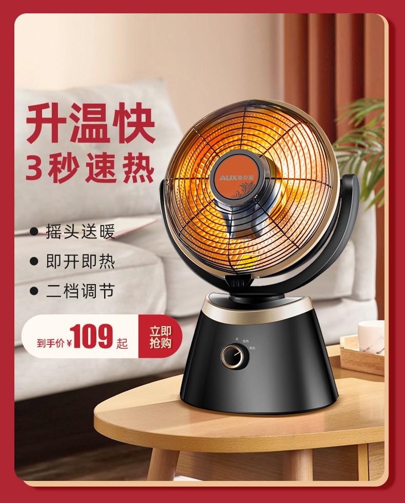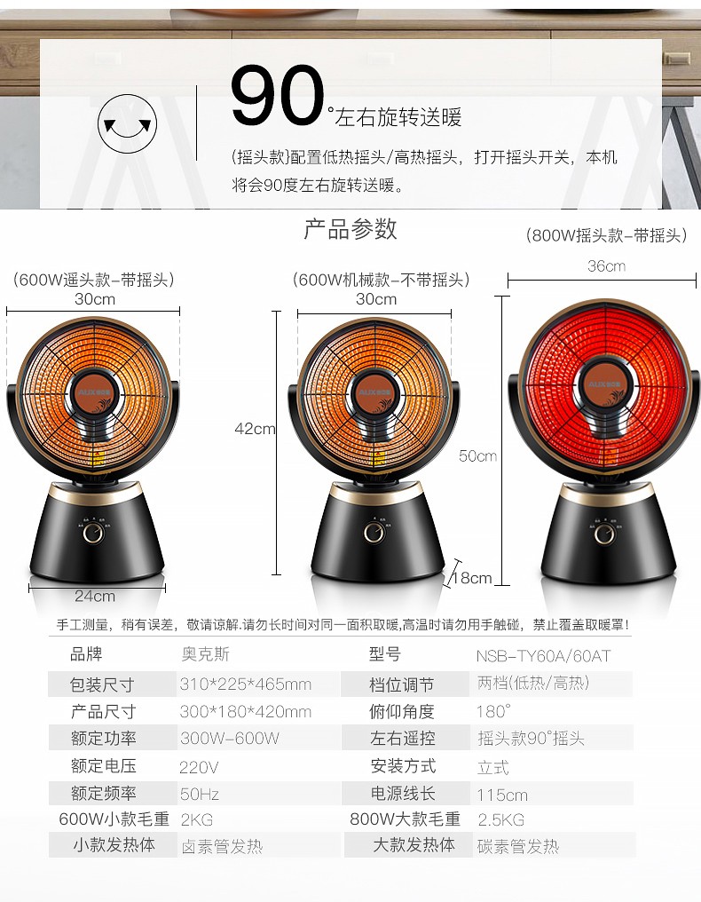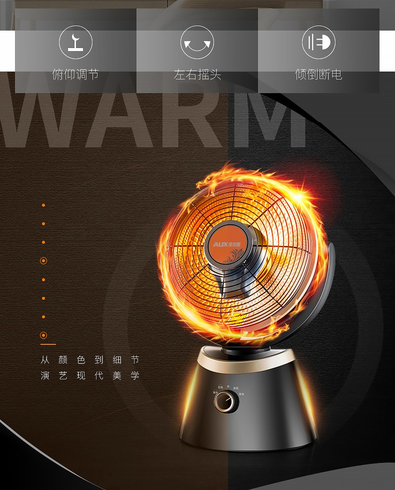 商品名称:奥克斯小太阳取暖器家用台式电暖气节能小型热风烤火炉暖风机浴室