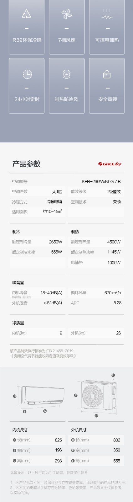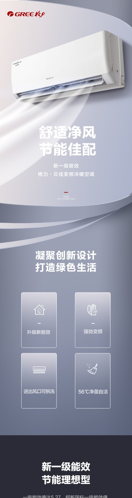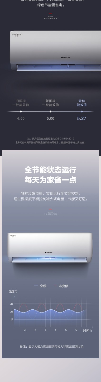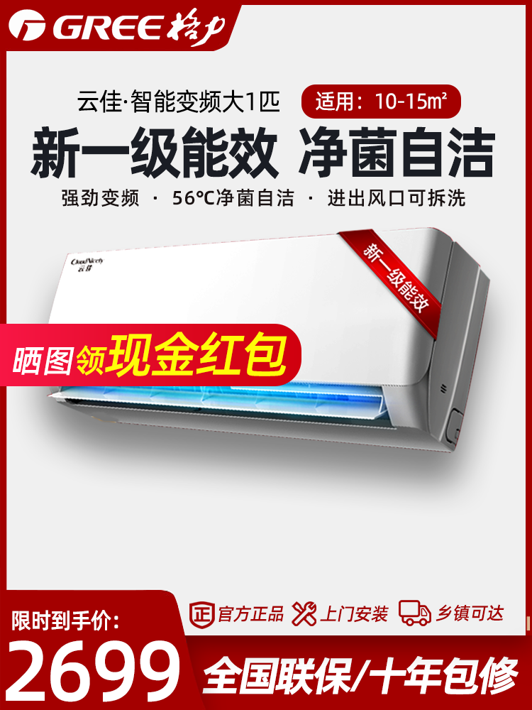 商品名称:Gree/格力空调大1匹一级变频挂机冷暖家用节能官网旗舰店官网云佳