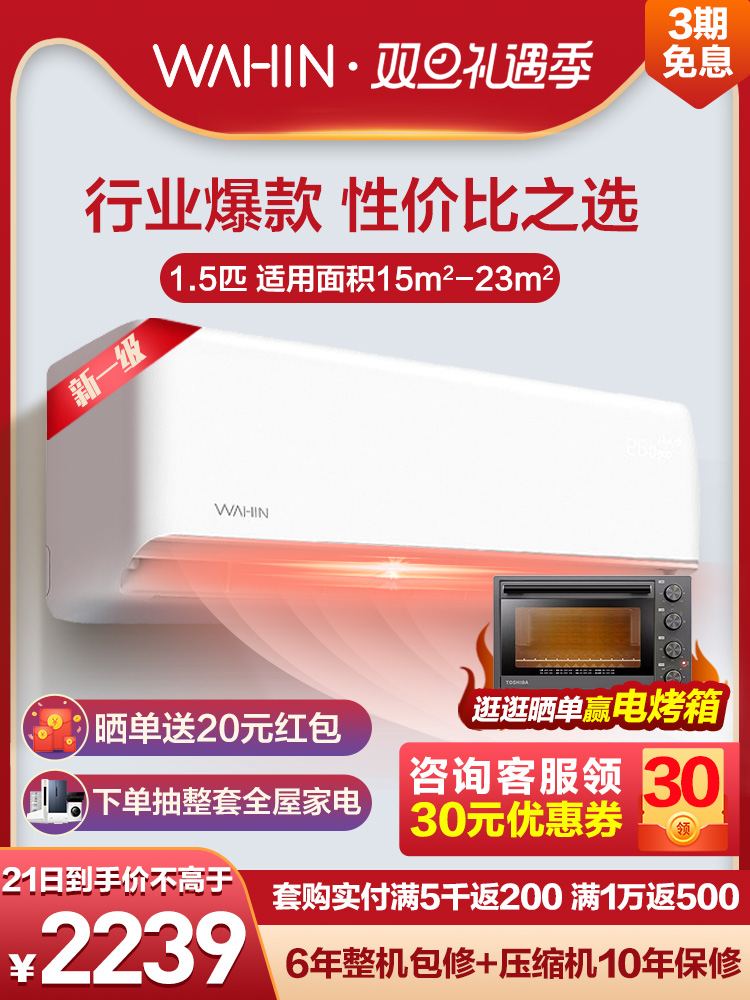 商品名称:华凌空调1.5匹新一级变频大卧室冷暖家用一体挂机官方旗舰店35HA1 新能效1级、第四代自清洁