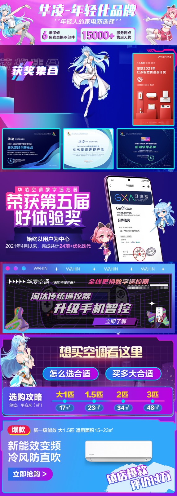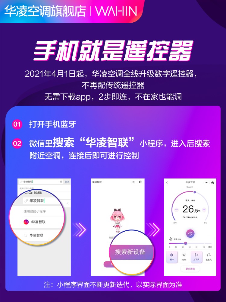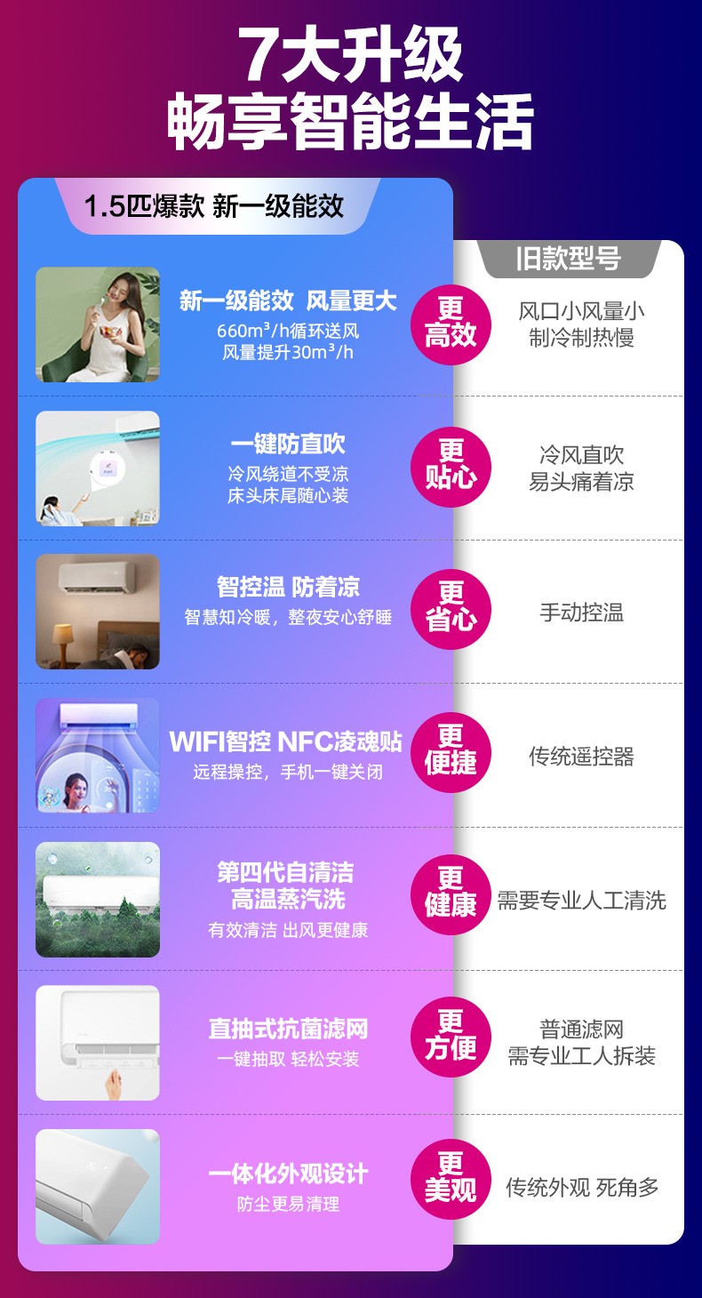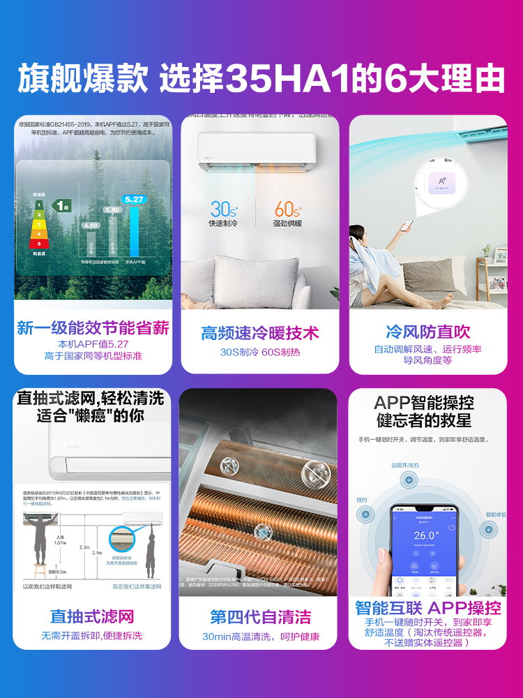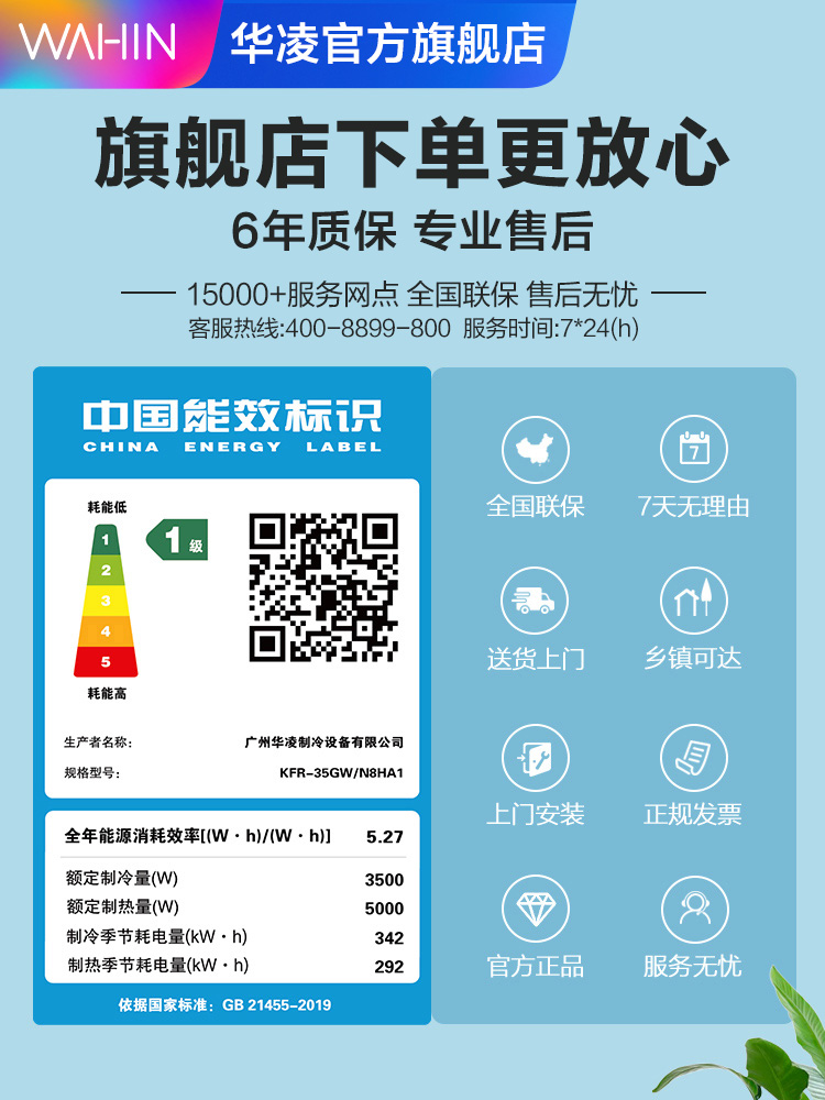 华凌空调1.5匹新一级变频大卧室冷暖家用一体挂机官方旗舰店35HA1 新能效1级、第四代自清洁