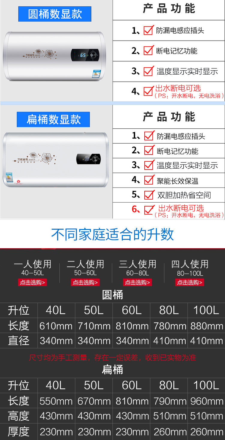 商品名称:【2021升级款】上门安装好太太电热水器家用卫生间储水式洗澡速热50升60L包安装 40升圆桶数显高配+自行安装 全国联保