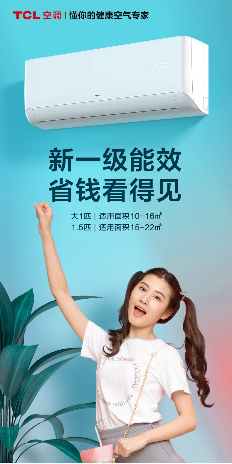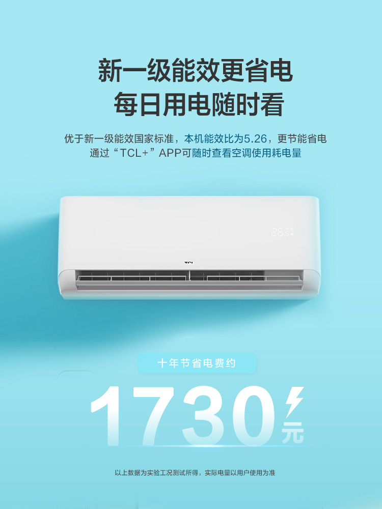 TCL大1.5p匹空调一级新能效智能变频自清洁壁挂式空调 新一级能效 强效制冷热 静音运行 电量统计