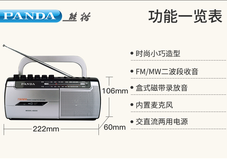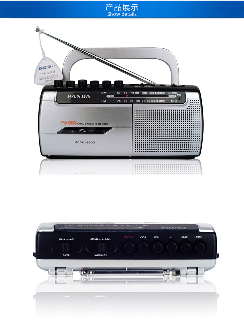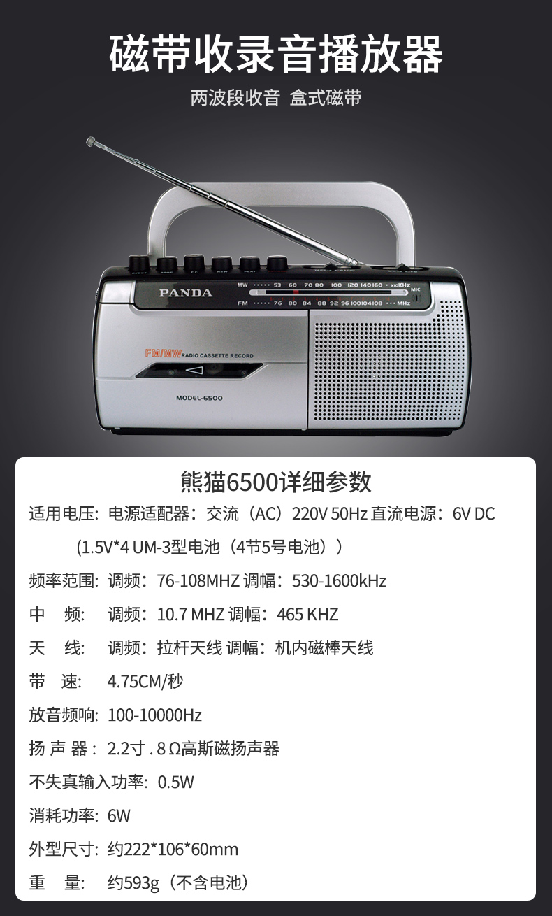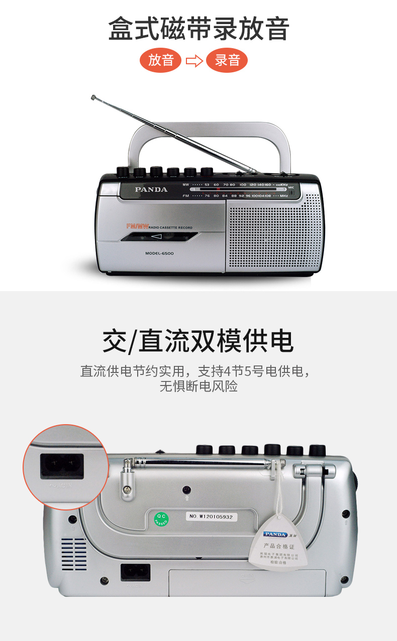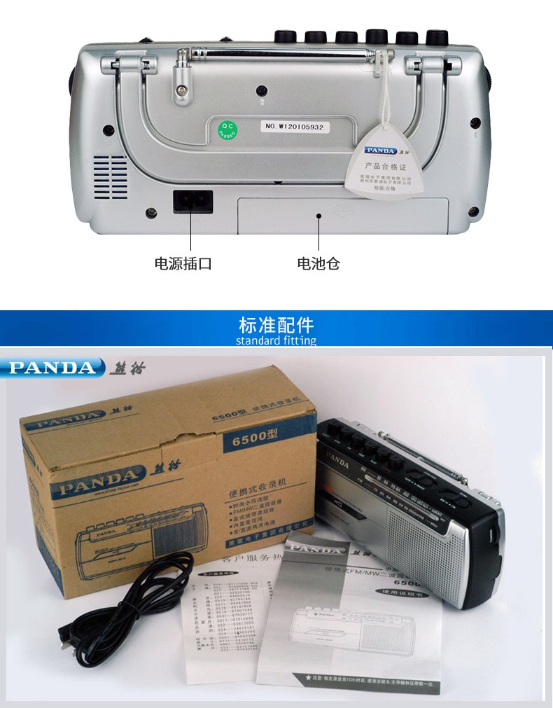商品名称:熊猫6500磁带播放机老人专用录音收音机新款便携式调频广播一体机