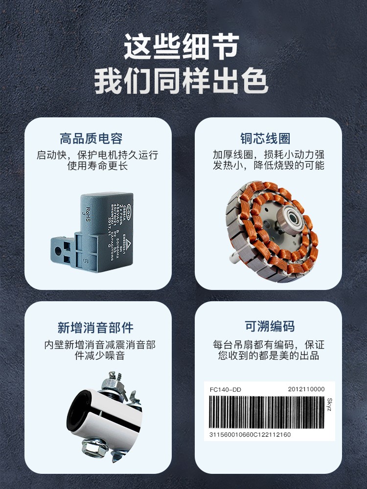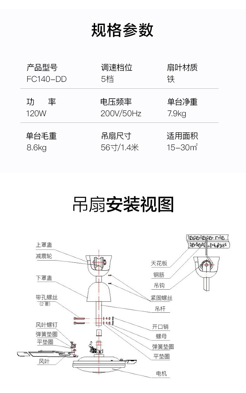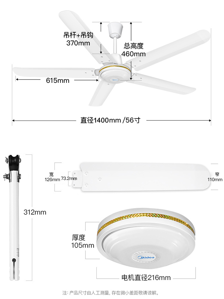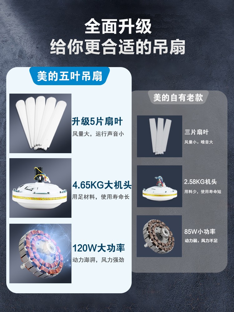 商品名称:美的五叶吊扇工业大风力56寸家用静音铁叶客厅餐厅三叶吊式电风扇