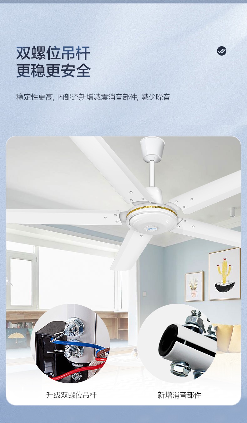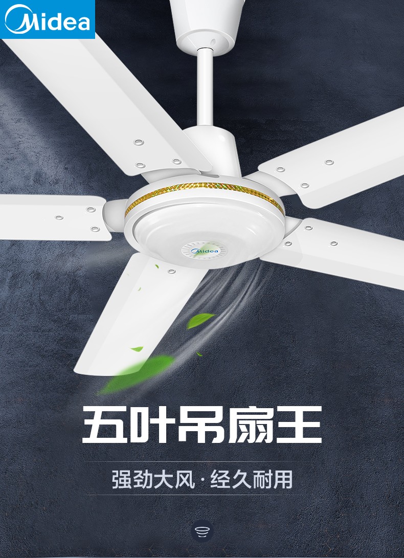 美的五叶吊扇工业大风力56寸家用静音铁叶客厅餐厅三叶吊式电风扇
