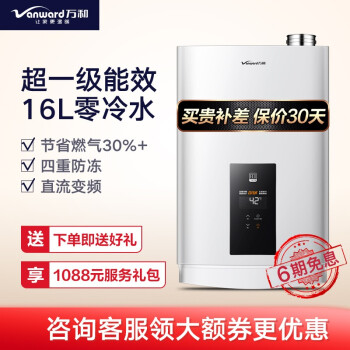 商品名称:万和(Vanward)零冷水燃气热水器16升恒温一级能效冷凝式天然气增压JSLQ27-PLS5P16 【超一级能效 节能30%+】