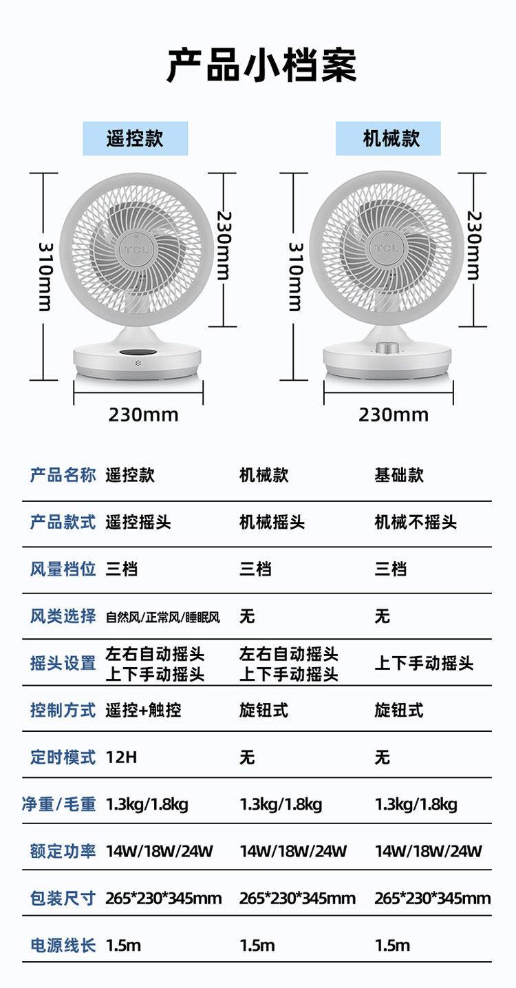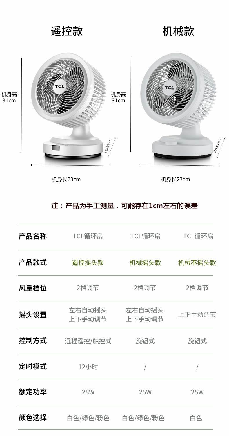 商品名称:TCL电风扇空气循环扇家用台式风扇静音涡轮对流电扇学生摇头台扇