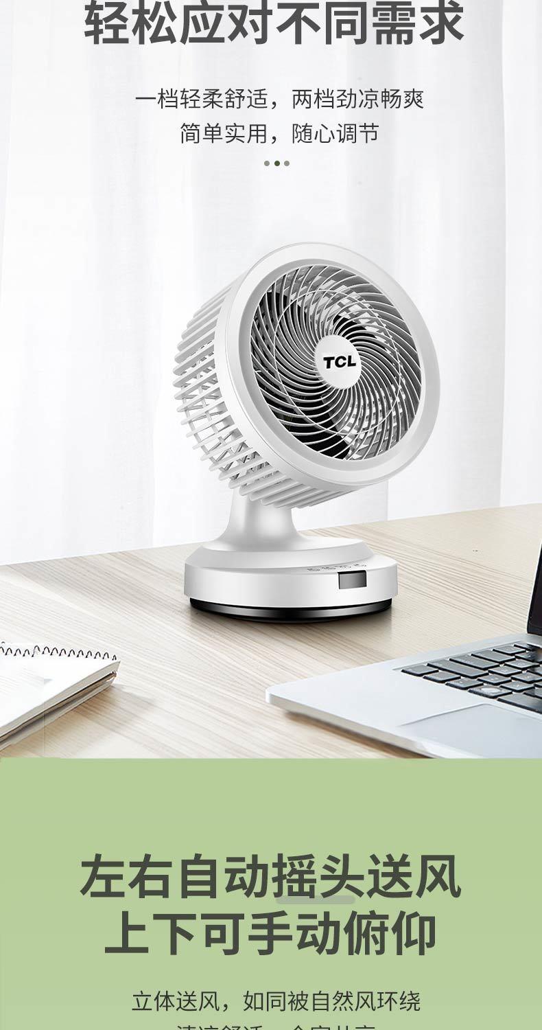 TCL电风扇空气循环扇家用台式风扇静音涡轮对流电扇学生摇头台扇