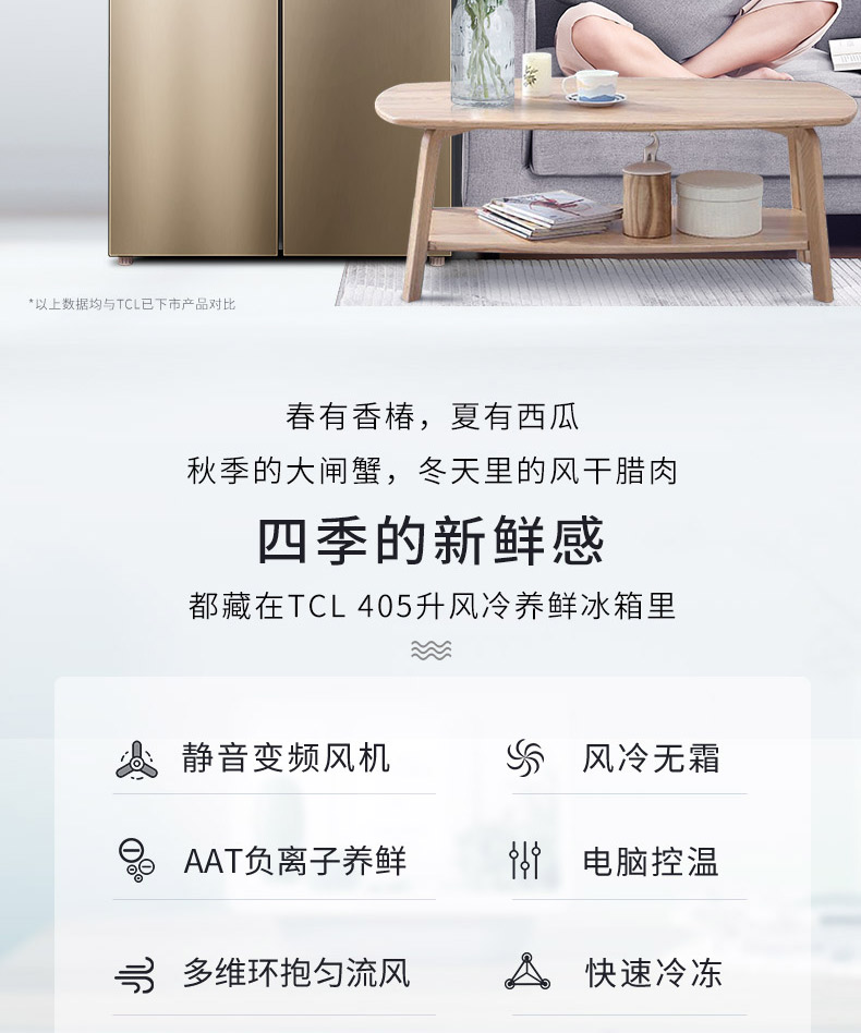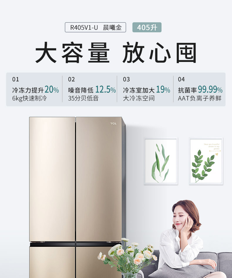 商品名称:TCL电冰箱515升家用风冷无霜双开门四开门多开门大容量静音冰箱长虹 515升节能静音【高端顶配】 TCL 405升十字对开【风冷无霜】