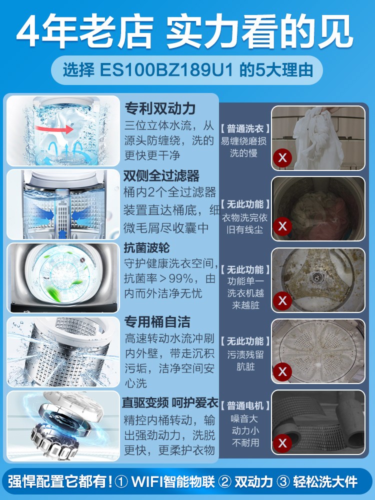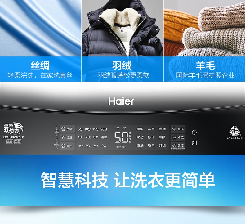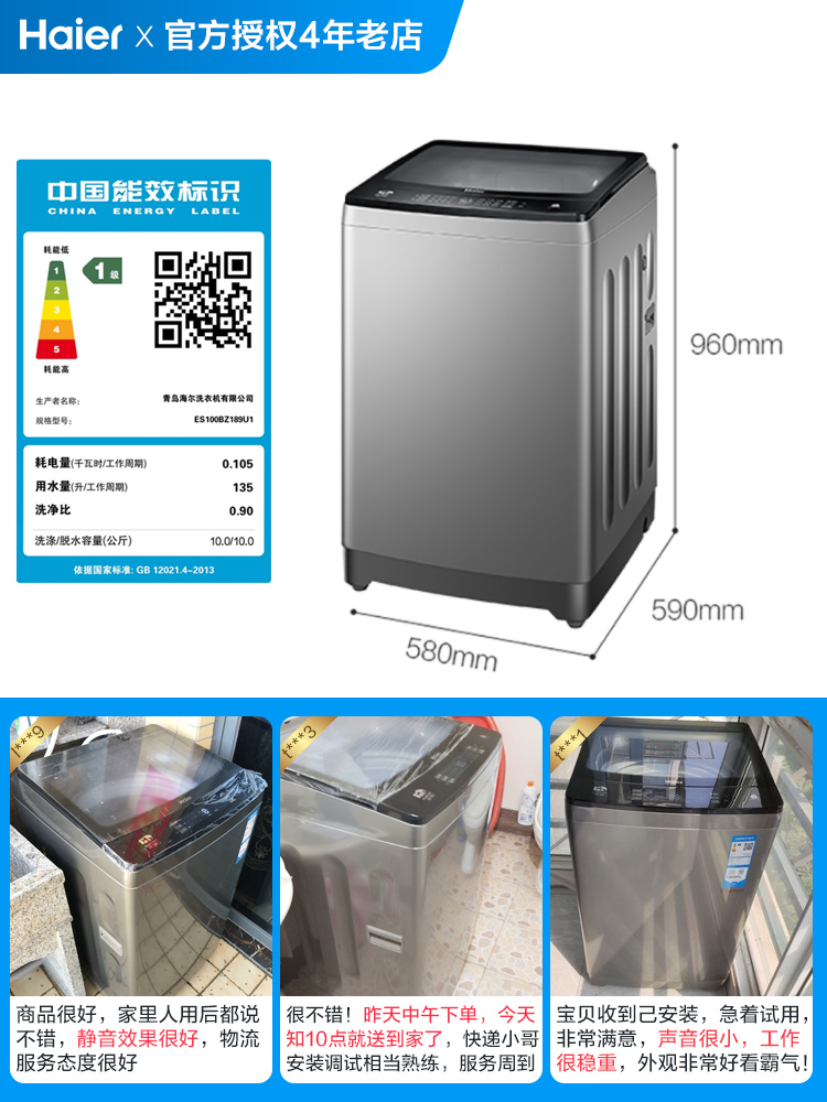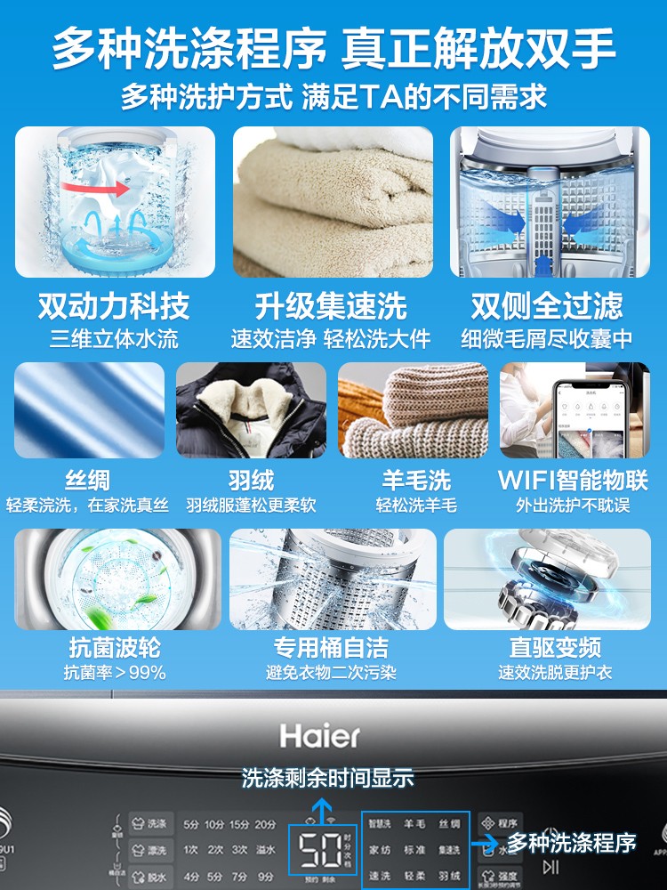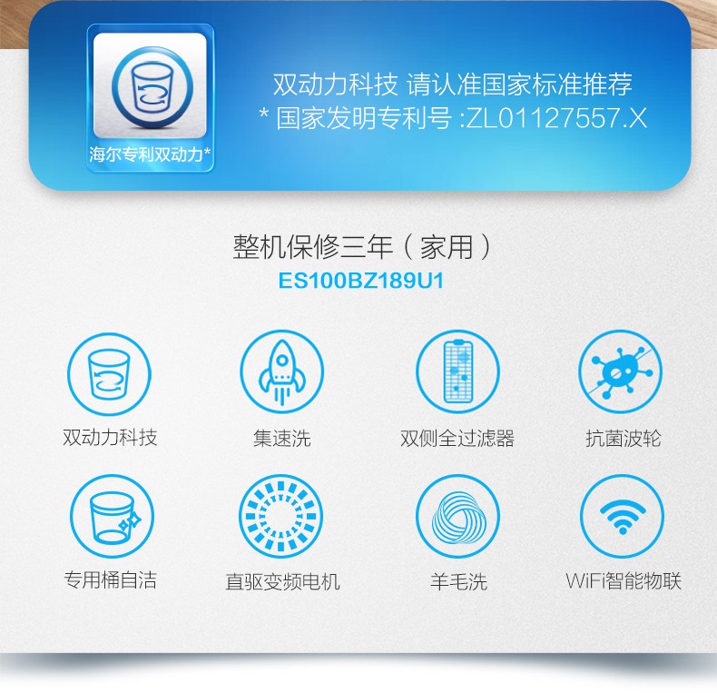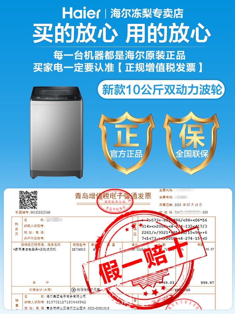 商品名称:海尔洗衣机全自动10公斤kg双动力变频波轮家用官方旗舰店BZ189U1