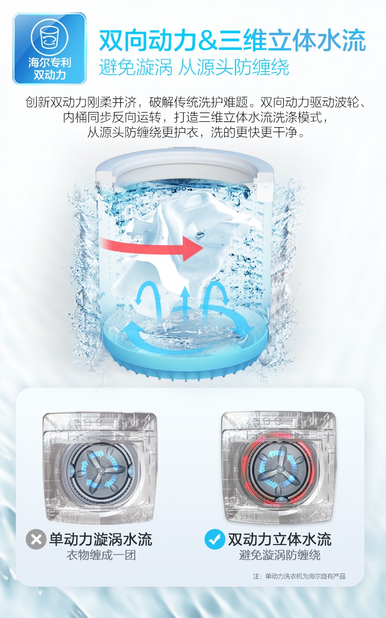海尔洗衣机全自动10公斤kg双动力变频波轮家用官方旗舰店BZ189U1