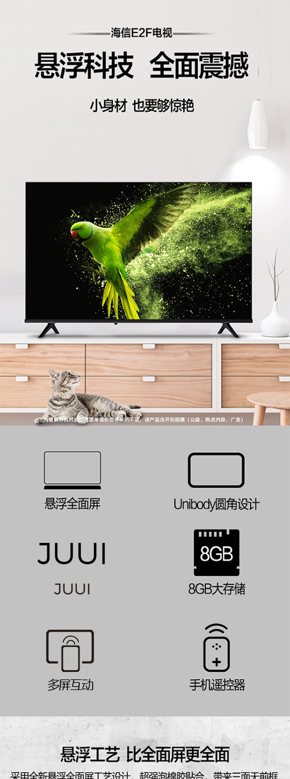 商品名称:海信 32E2F 32英寸AI全面屏智能网络wifi家用液晶电视机彩电43 40