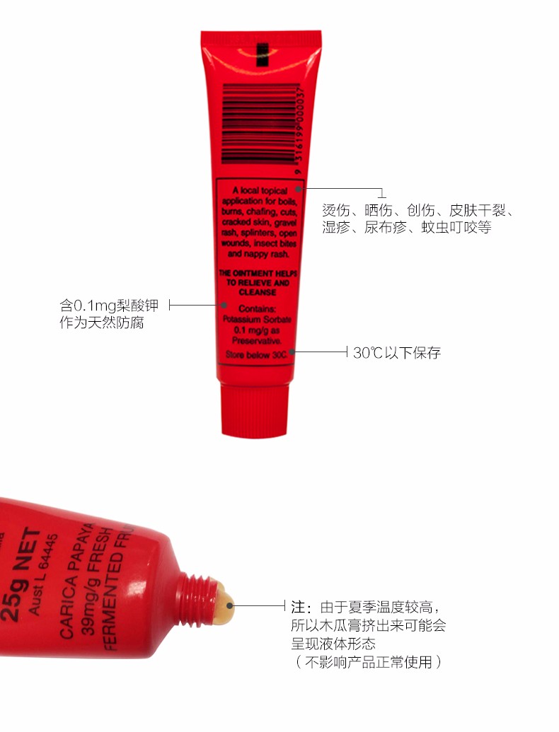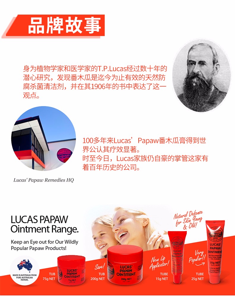 商品名称:澳洲Lucas Papaw/卢卡斯纯天然木瓜膏 25g 2件装