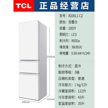 商品名称:TCL电冰箱200升家用风冷无霜大容量省电节能三门小型电冰箱长虹 TCL 405升 十字门【风冷无霜】