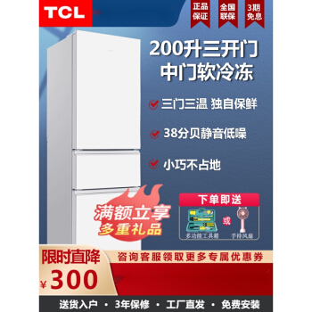 TCL电冰箱200升家用风冷无霜大容量省电节能三门小型电冰箱长虹 TCL 405升 十字门【风冷无霜】