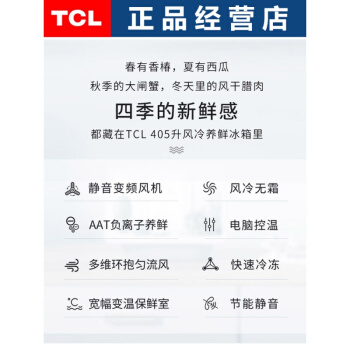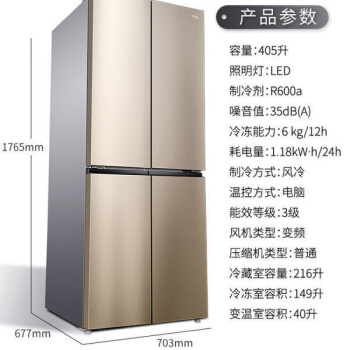 商品名称:TCL电冰箱515升家用风冷无霜双开门四开门多开门大容量静音冰箱长虹 TCL 405升十字对开【风冷无霜】