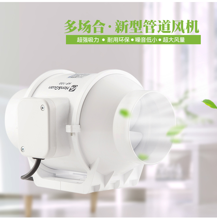 鸿冠管道排气扇风机HF一100P静音卧室卫生间抽风机换气家用通风