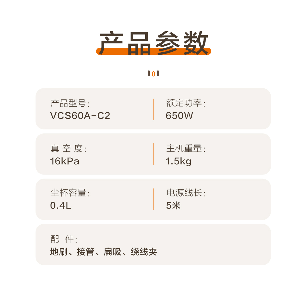 商品名称:苏泊尔吸尘器家用小型大吸力手持有线地毯除尘多吸头轻量型随手吸