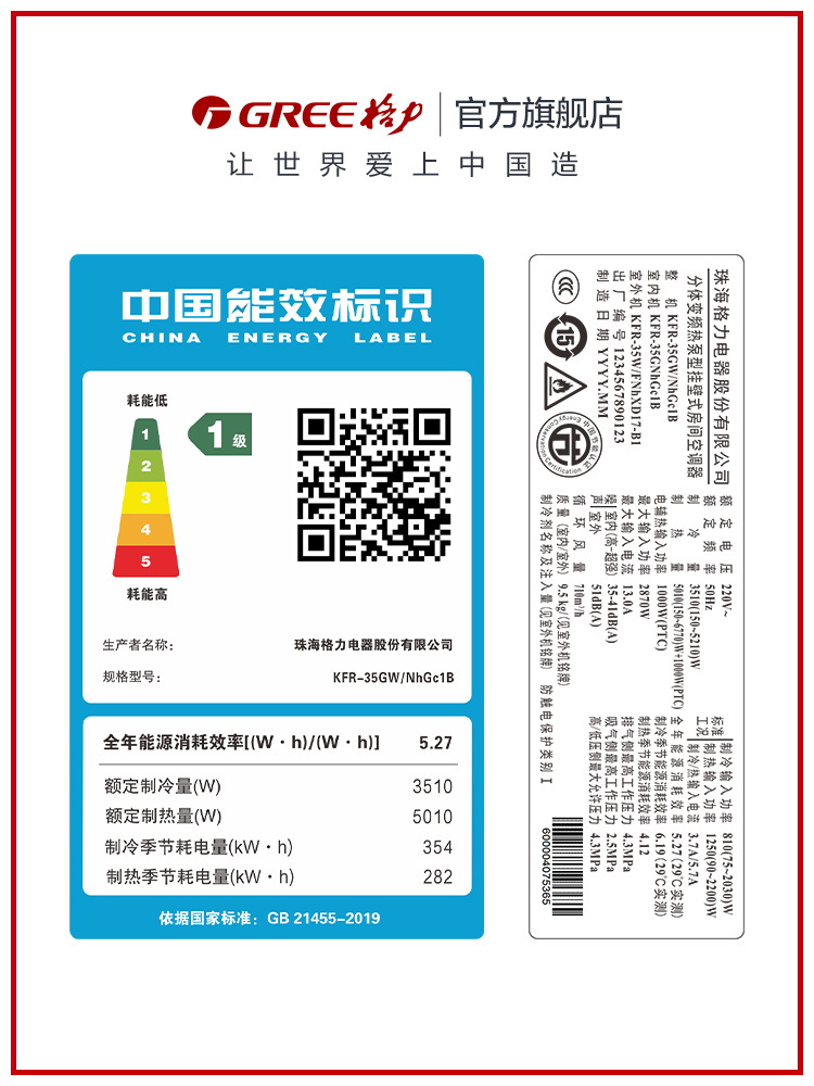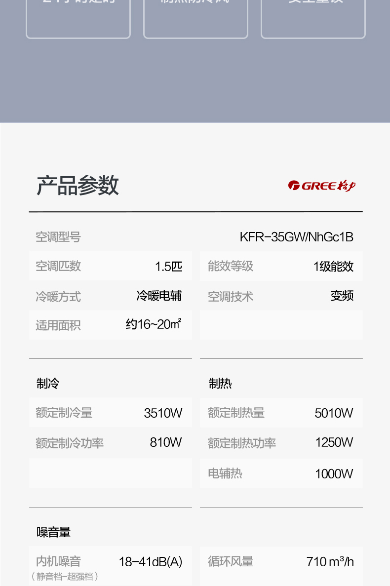 商品名称:格力空调大1.5匹挂机新一级能效变频冷暖壁挂官方旗舰店官网云佳