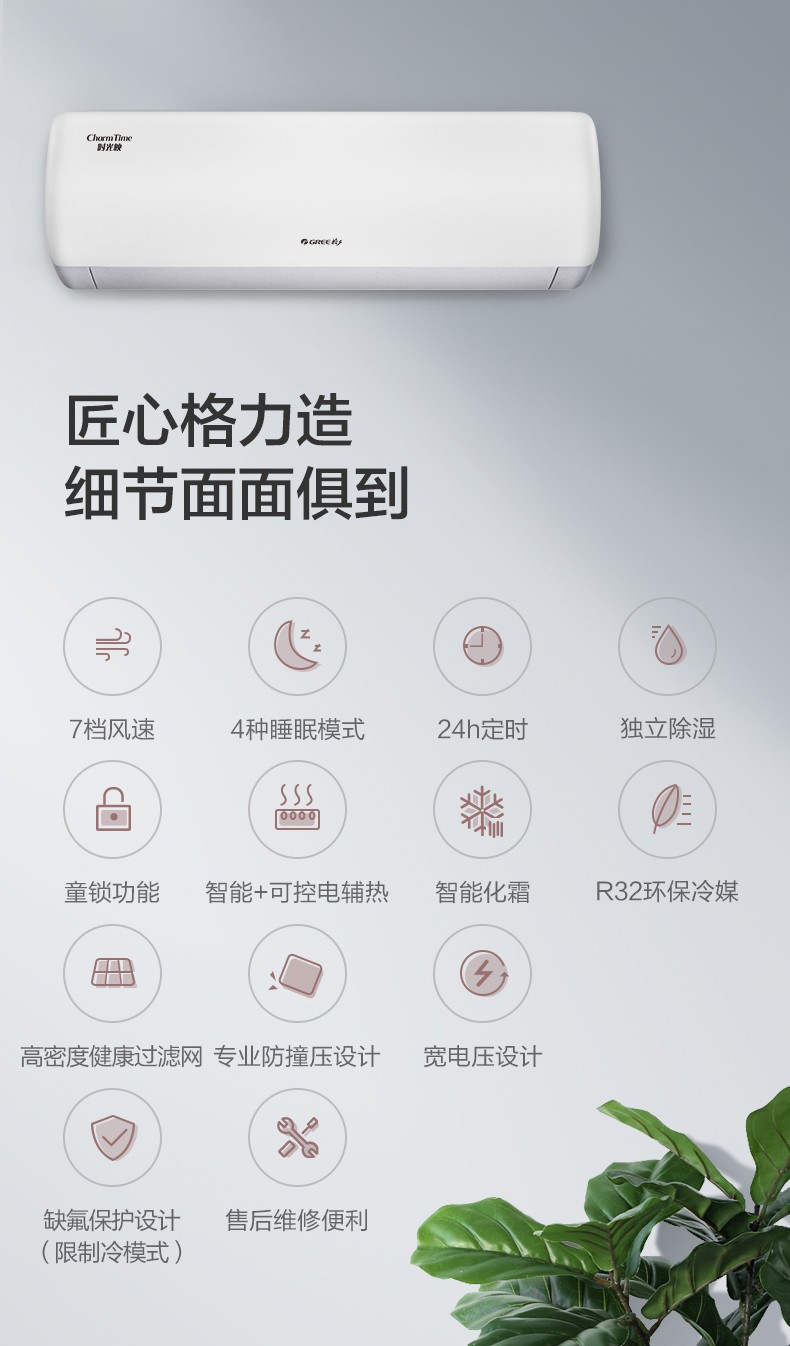 商品名称:格力空调大一匹1.5p变频新能效省电挂机壁挂式一级能效冷暖时光映