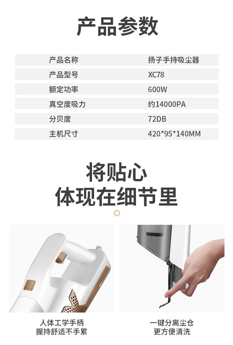 商品名称:可吸水扬子吸尘器家用小型大吸力除螨静音无线手持车用大功率地毯